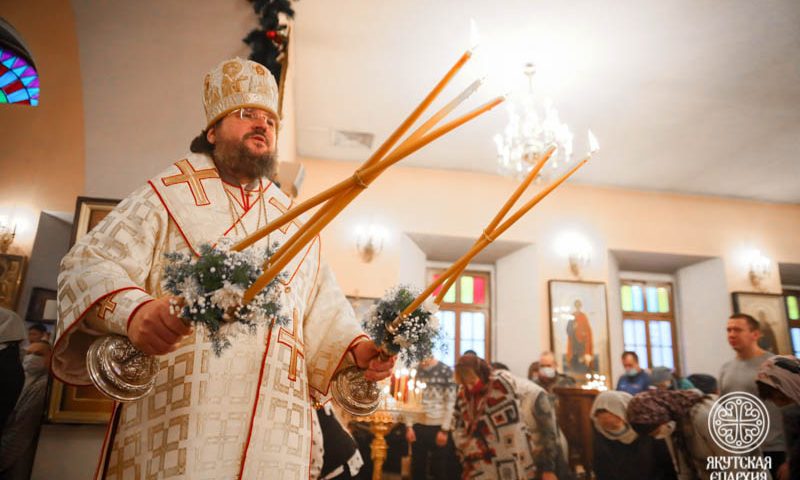 Священники Якутской епархии сослужили архипастырю за Литургией во Всехсвятском храме