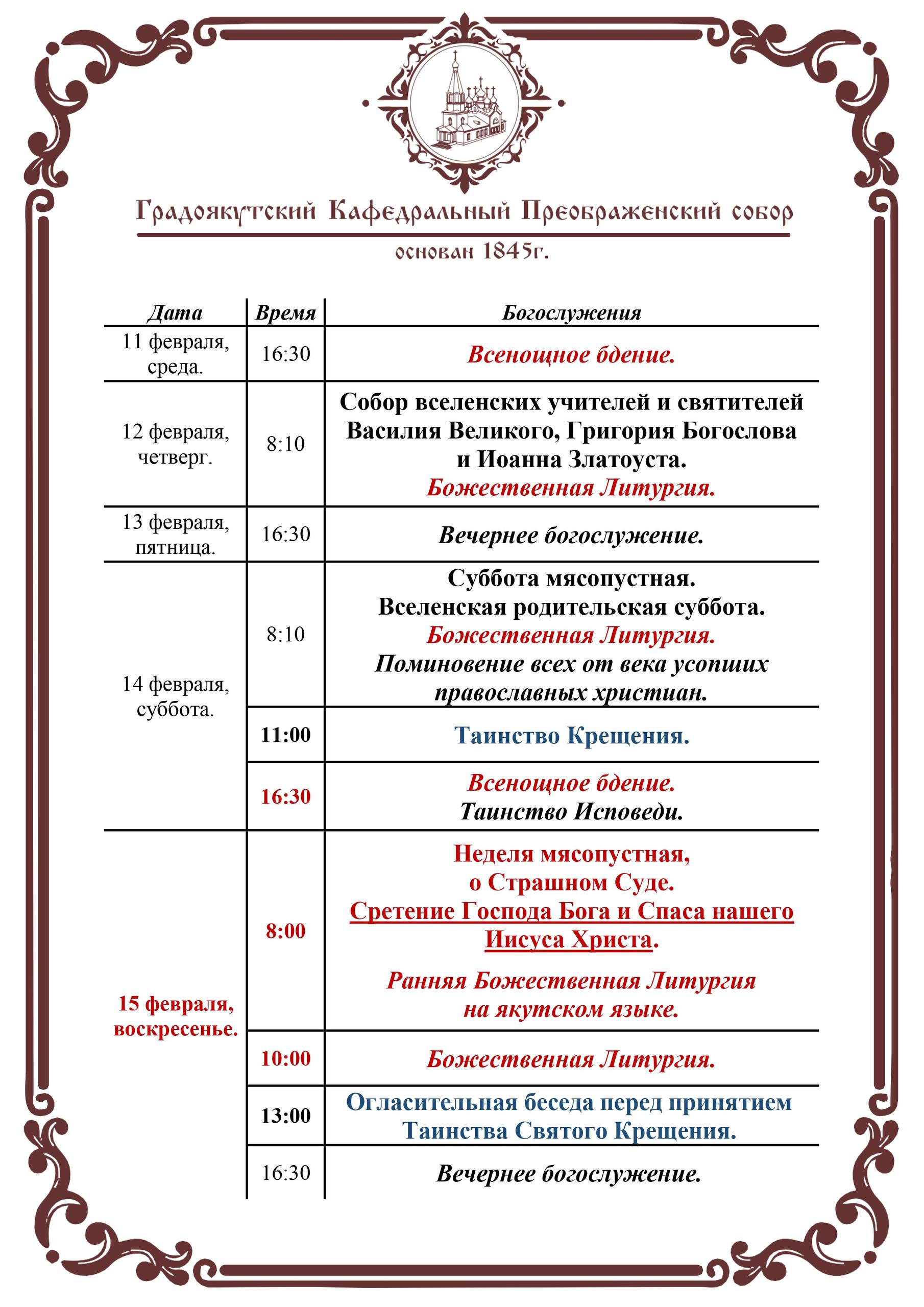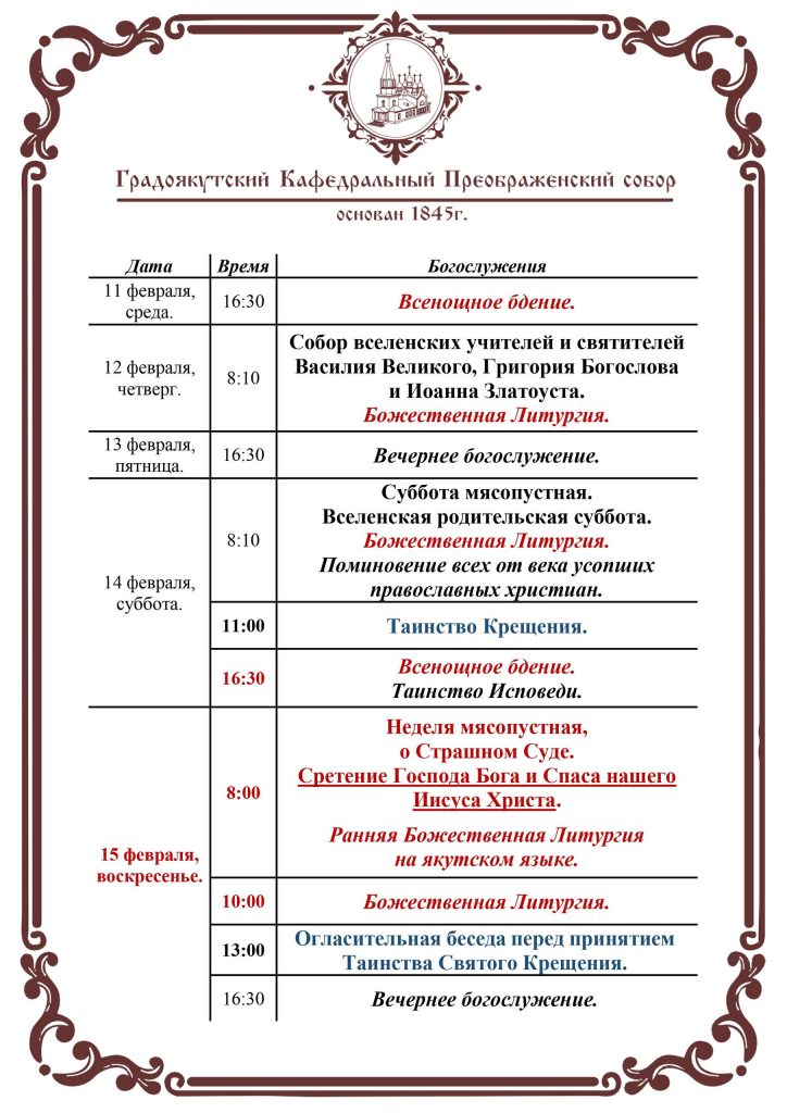 Воскресенье, 8 февраля 2026 г. (26 января ст.ст.)