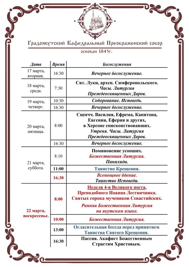 Вторник, 17 марта 2026 г. (4 марта ст.ст.)