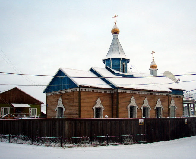 Как верующий православный человек, я поспешил в ближайшее воскресение в этот чудесный Свято-Никольский храм. Храм деревянный, очень красивый, один из самых первых православных деревянных храмов в современной Якутии. Одна из древних жемчужин российской православной Арктической Якутии, чего только не испытал этот чудо-храм! В годы советской власти он, конечно, не действовал, и здание выполняло разные функции — от склада до больницы. Мне рассказывали, что в нем даже было родильное отделение, и роженицам являлся сам святитель Николай, чтобы облегчить их страдания.