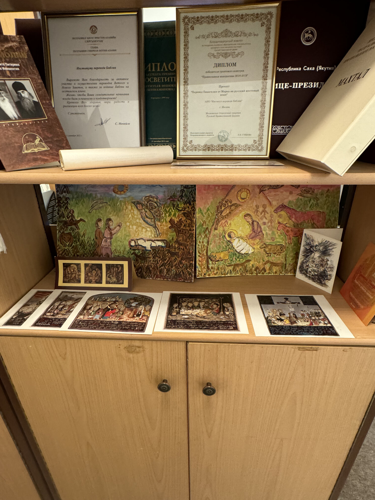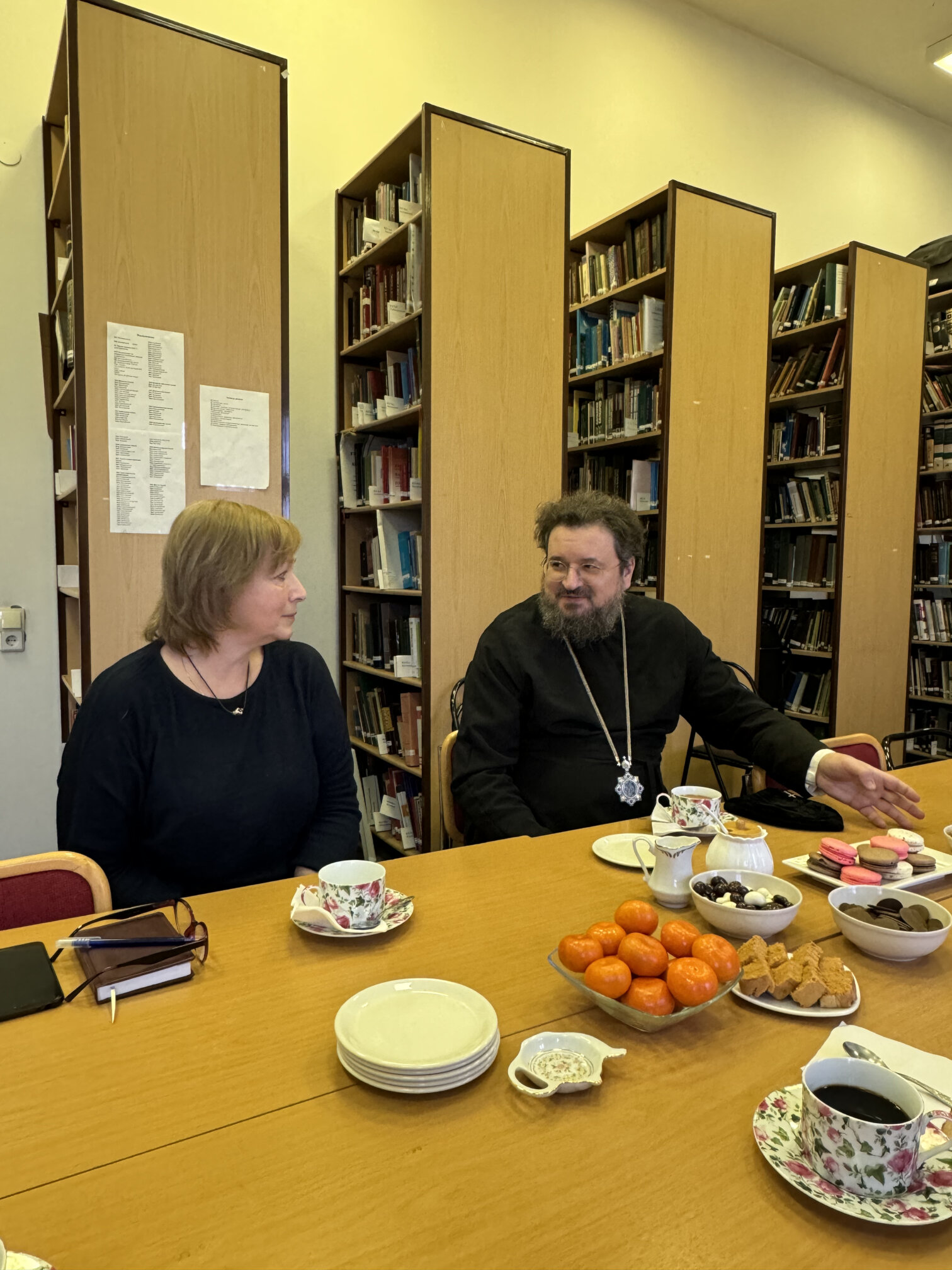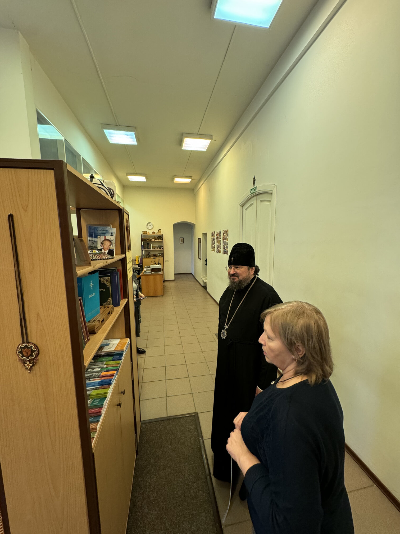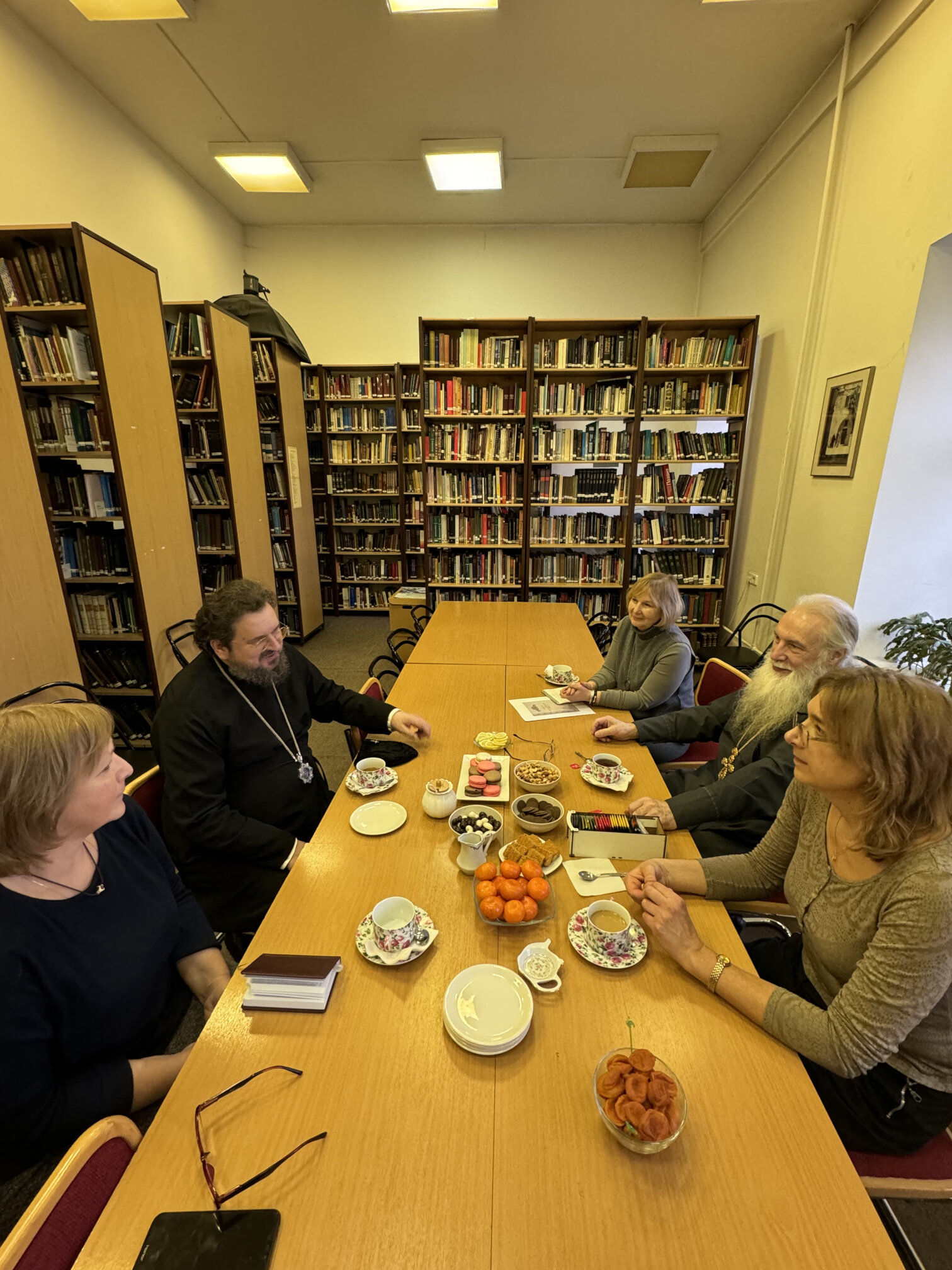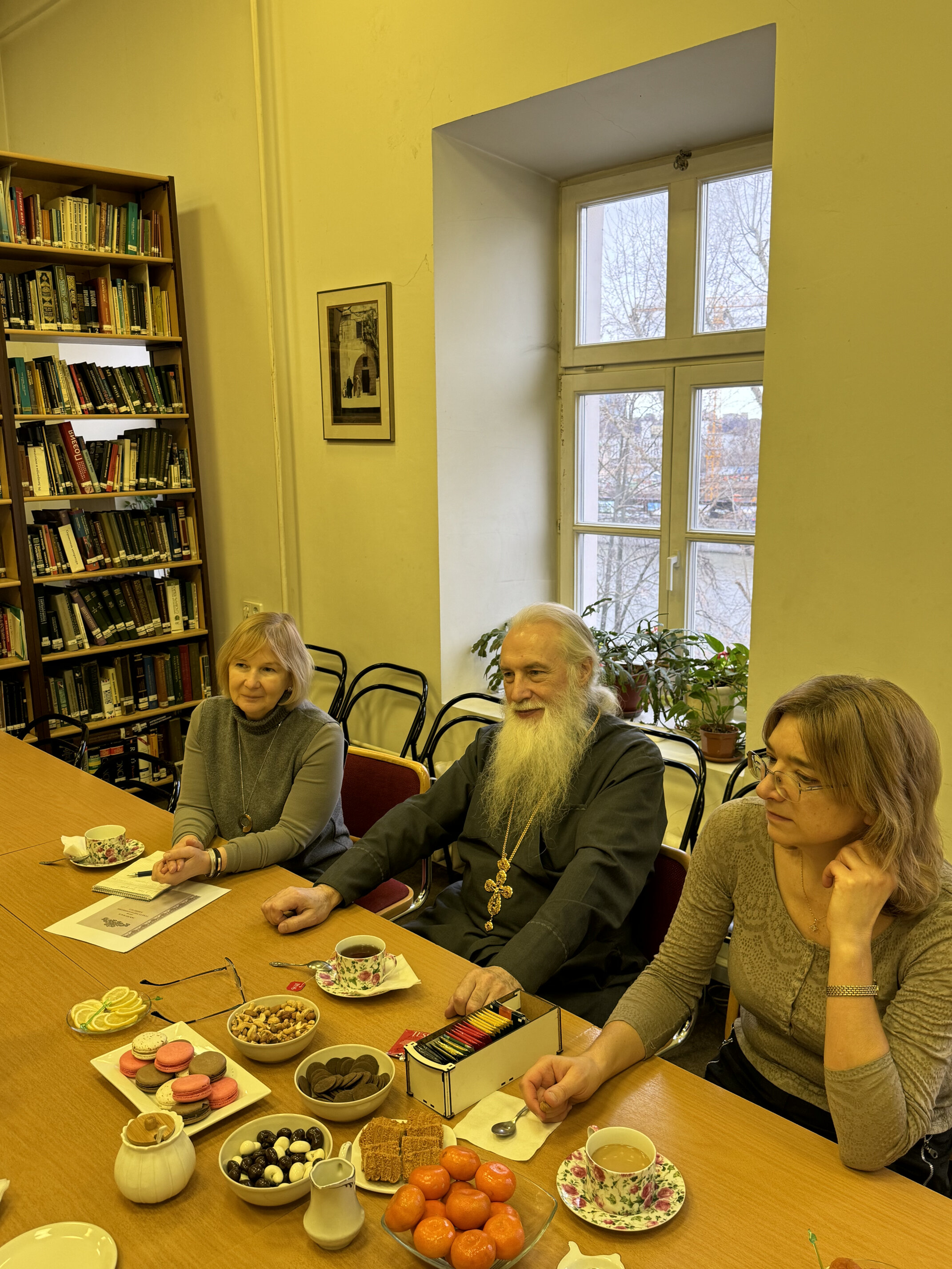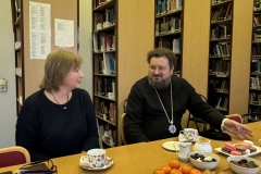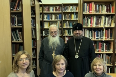 Владыка поблагодарил коллектив института за продолжение и поддержку работы над переводом библейских книг Ветхого Завета на якутский язык. В беседе участвовали иеромонах Никандр (Горбатюк), секретарь Якутской епархии; протоиерей Александр Троицкий, директор Синодальной библиотеки Московского Патриархата имени Святейшего Патриарха Алексия II, председатель Правления Института перевода Библии; заместитель директора Института перевода Библии Наталья Горбунова.