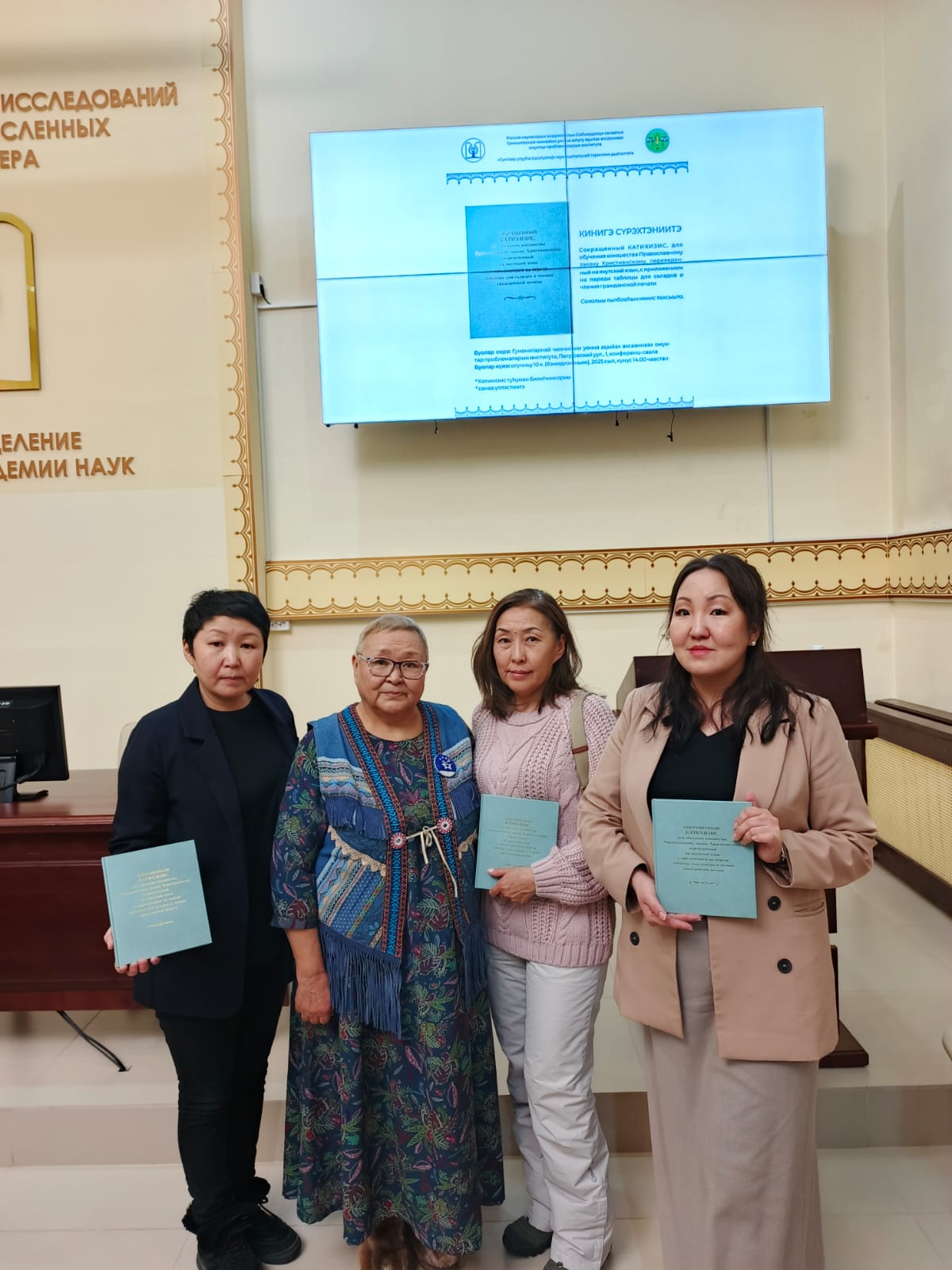 10 февраля в Институте гуманитарных исследований проблем малочисленных народов севера состоялась презентация книги «Сокращенный катехизис для обучения юношества Православному закону Христианскому, переведённый на якутский язык с приложением таблицы для складов и чтения гражданской печати». В мероприятии принял участие благочинный 1-го центрального благочиния Якутской епархии протоиерей Павел Слепцов.