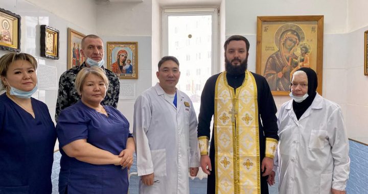 Также священник совершил Таинство Елеосвящения (Соборование), рассказал о смысле постных дней, пожелал врачам и медицинскому персоналу крепости сил и помощи Божией в их важном и очень нужном врачебном деле.