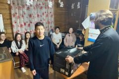 Продолжается социальная работа прихода апостола и евангелиста Матфея поселка Усть-Мая в Усть-Майском районе. На средства пожертвований, собранных на краудфандинговой платформе mirom.help при поддержке Синодального отдела по церковной благотворительности и социальному служению, были приобретены необходимые товары. В школу поселка Усть-Мая, детский сад «Аленушка» села Петропавловск и детский сад села Усть-Миль были переданы материалы для творчества и канцелярские товары. Интернат села Петропавловск получил в подарок отпариватель. Одинокой жительнице Усть-Маи была оказана адресная помощь продуктовым набором.