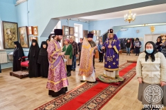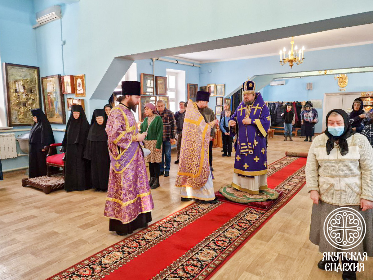 8 марта 2025 года, в субботу первой недели Великого Поста, день памяти святого великомученика Феодора Тирона, а также день памяти обретения мощей блаженной Матроны Московской, архиепископ Якутский и Ленский Роман совершил Божественную Литургию в Покровском женском монастыре. С архипастырем молились игумения Архелая (Биянова) с сестрами обители, прихожане и паломники.