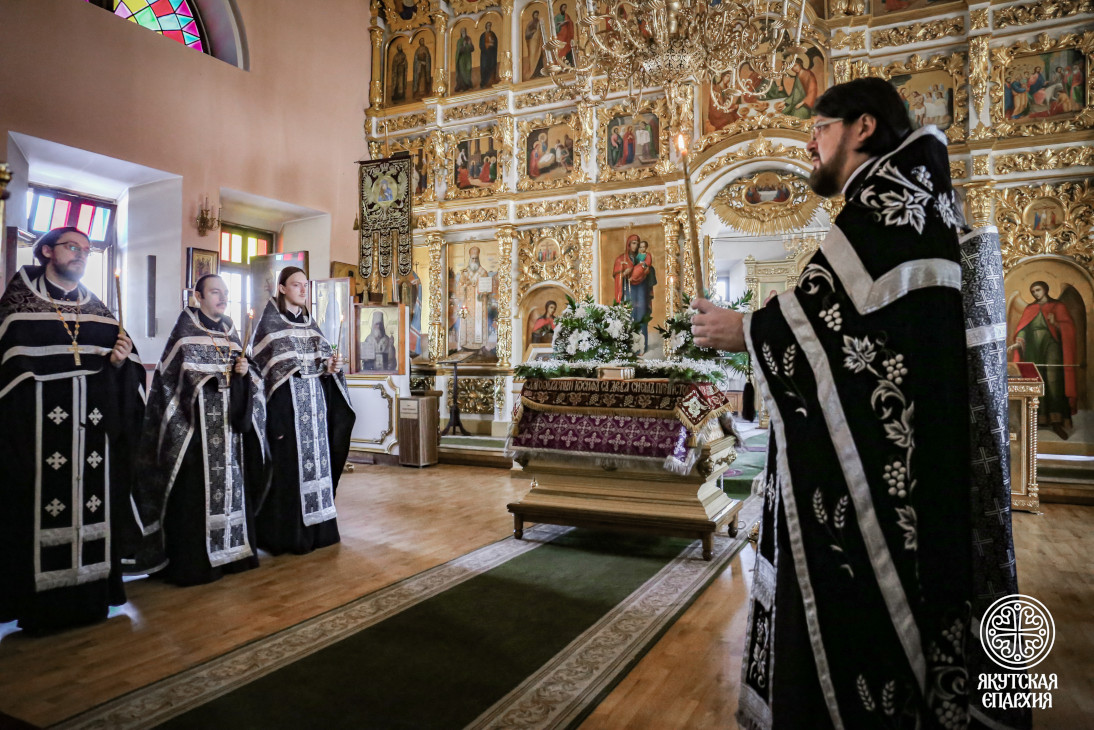 18 апреля 2025 года, в Великую Пятницу, архиепископ Якутский и Ленский Роман совершил уставные богослужения в Преображенском кафедральном соборе. На вечерне с выносом Плащаницы проповедь произнес настоятель собора иеромонах Никандр (Горбатюк).