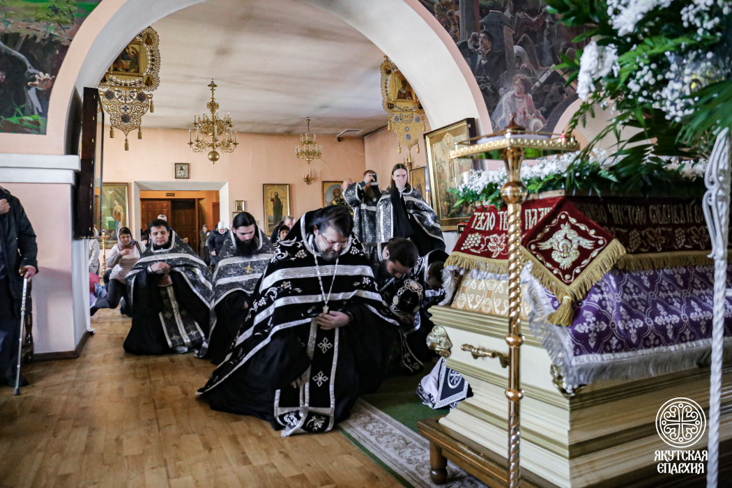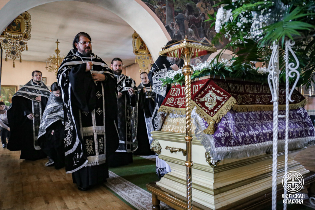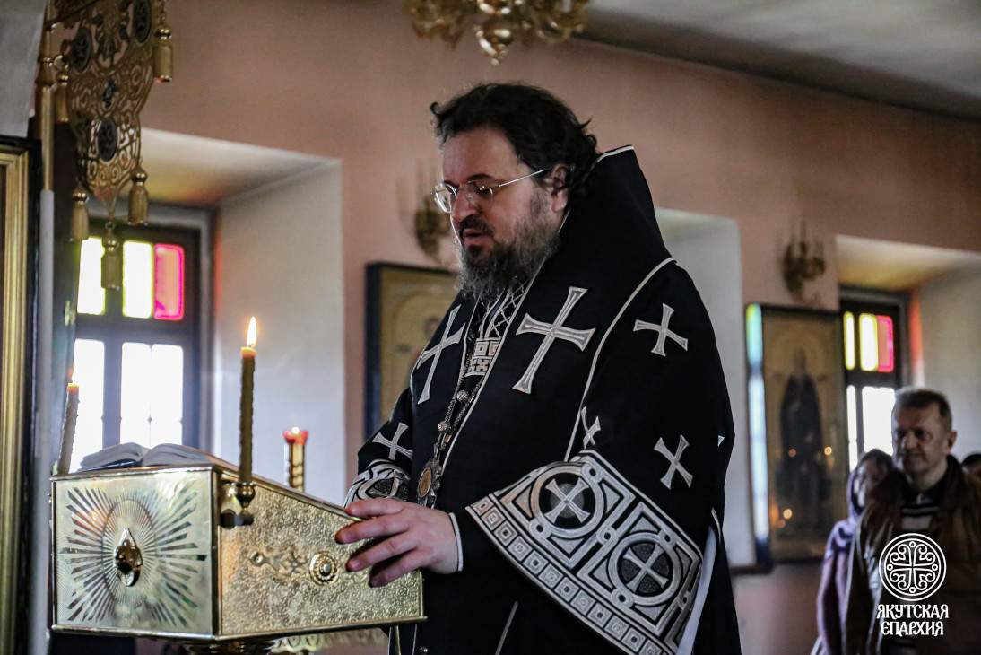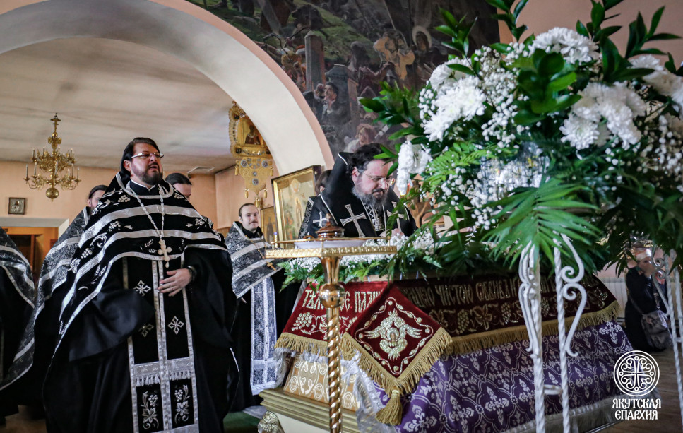 18 апреля 2025 года, в Великую Пятницу, архиепископ Якутский и Ленский Роман совершил уставные богослужения в Преображенском кафедральном соборе. На вечерне с выносом Плащаницы проповедь произнес настоятель собора иеромонах Никандр (Горбатюк).