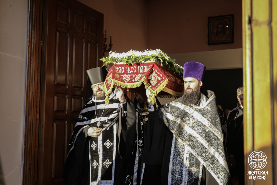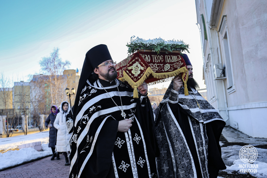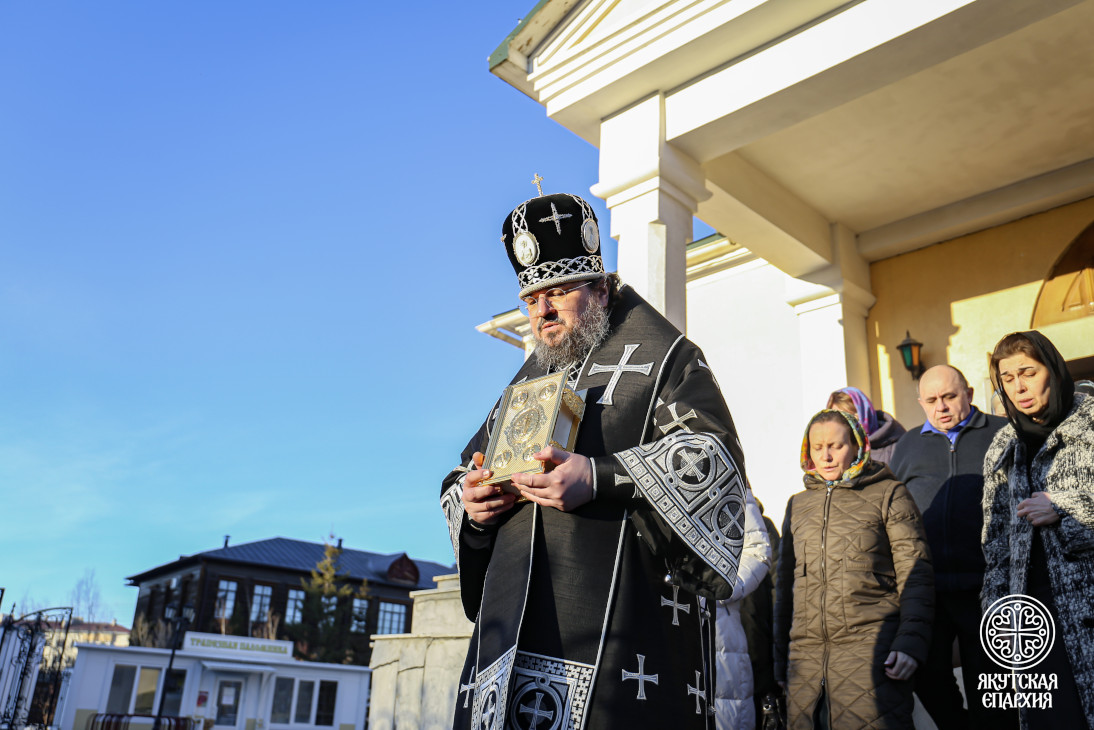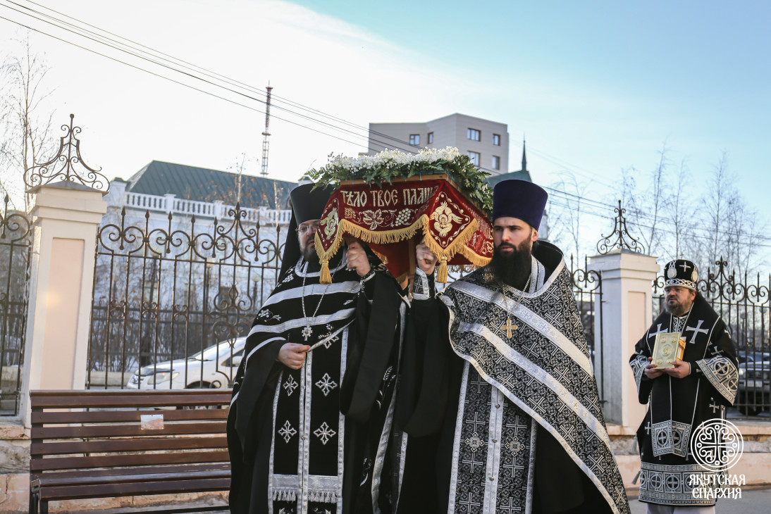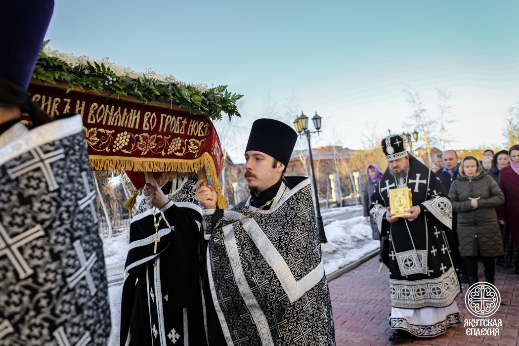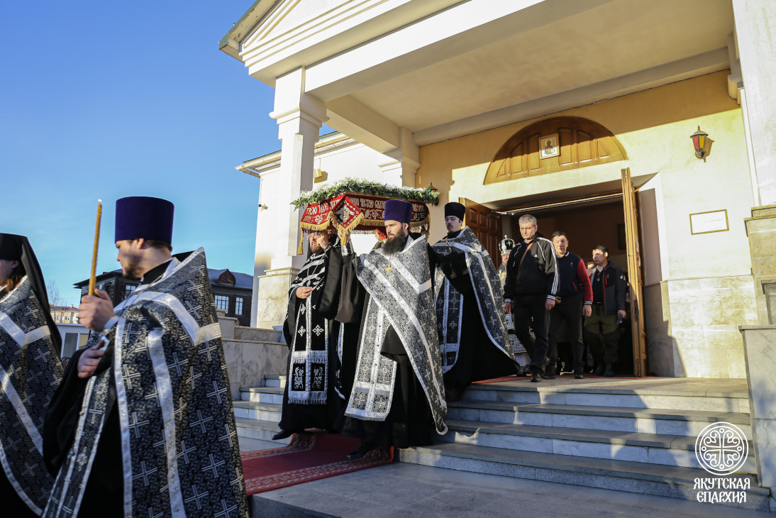 18 апреля 2025 года, в Великую Пятницу, архиепископ Якутский и Ленский Роман совершил уставные богослужения в Преображенском кафедральном соборе. На вечерне с выносом Плащаницы проповедь произнес настоятель собора иеромонах Никандр (Горбатюк).