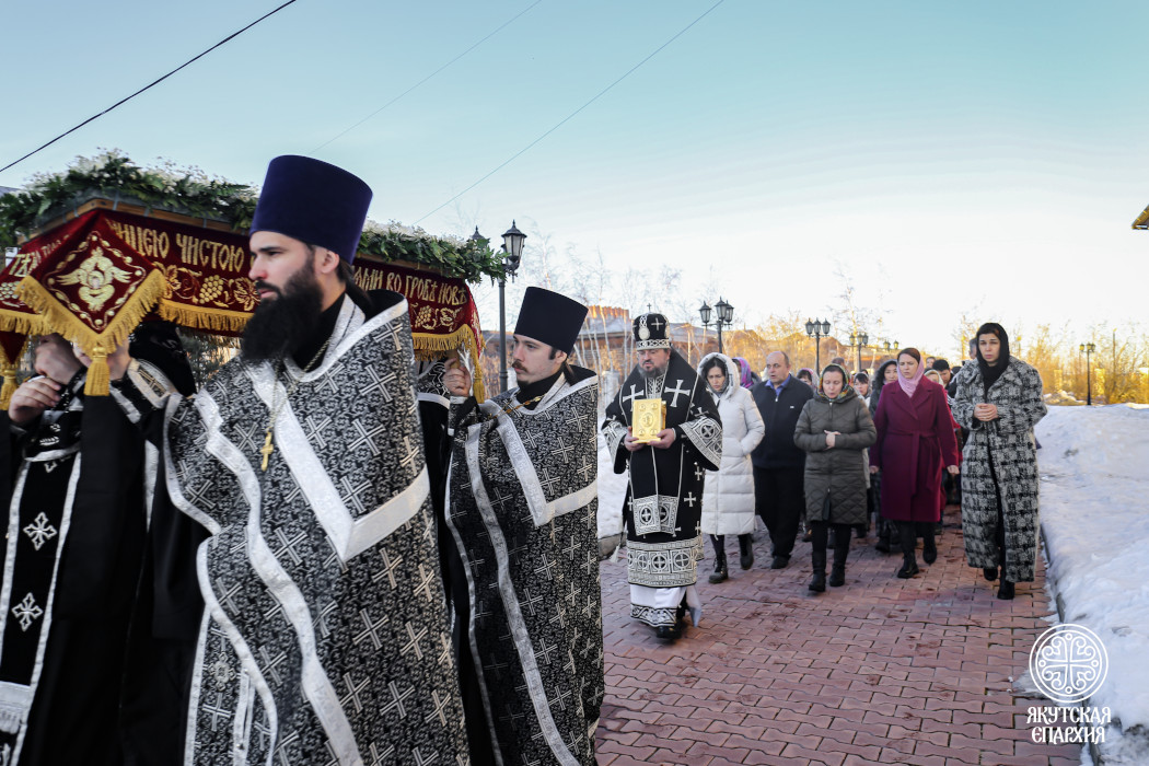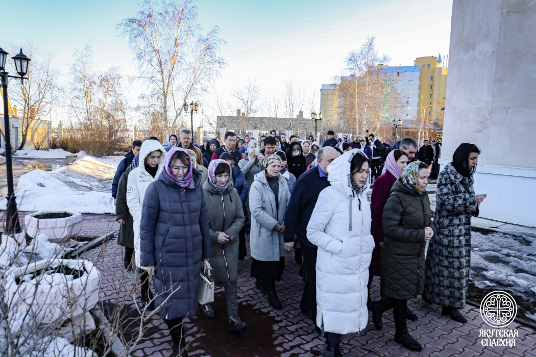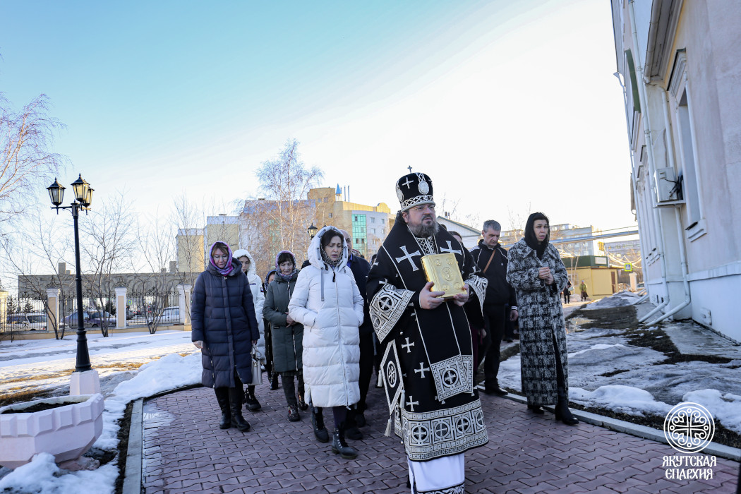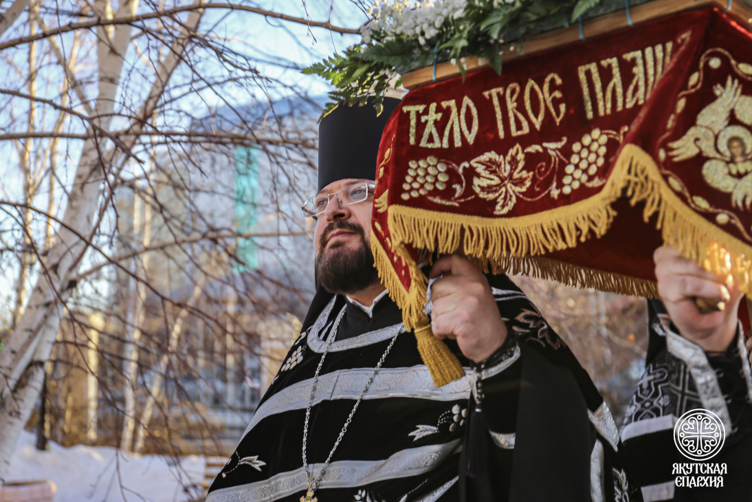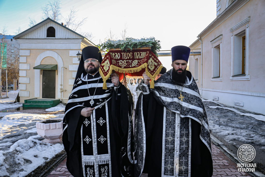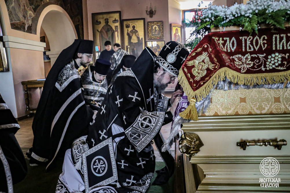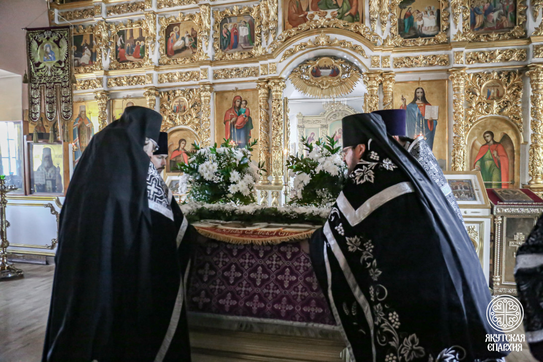 18 апреля 2025 года, в Великую Пятницу, архиепископ Якутский и Ленский Роман совершил уставные богослужения в Преображенском кафедральном соборе. На вечерне с выносом Плащаницы проповедь произнес настоятель собора иеромонах Никандр (Горбатюк).
