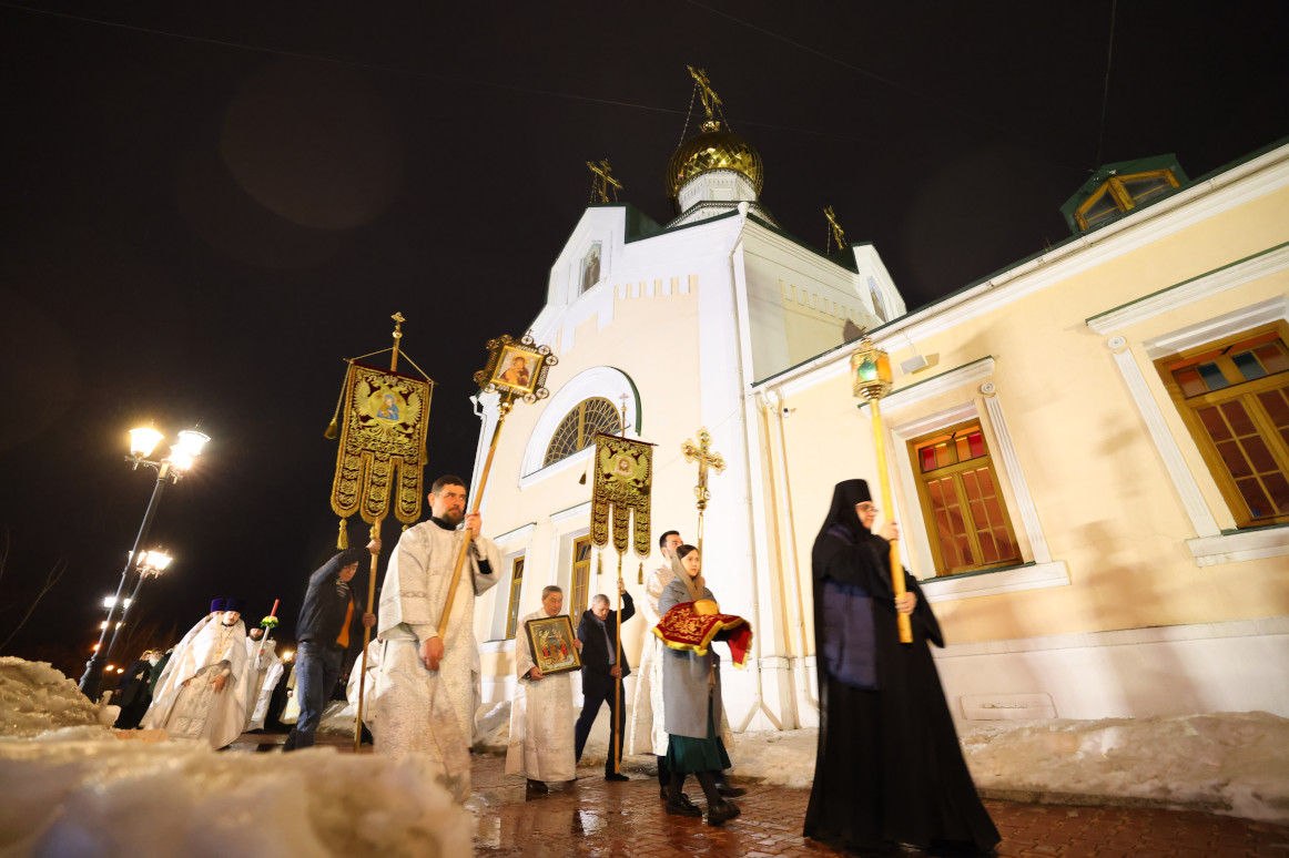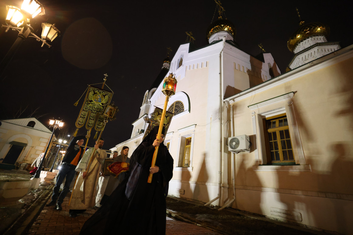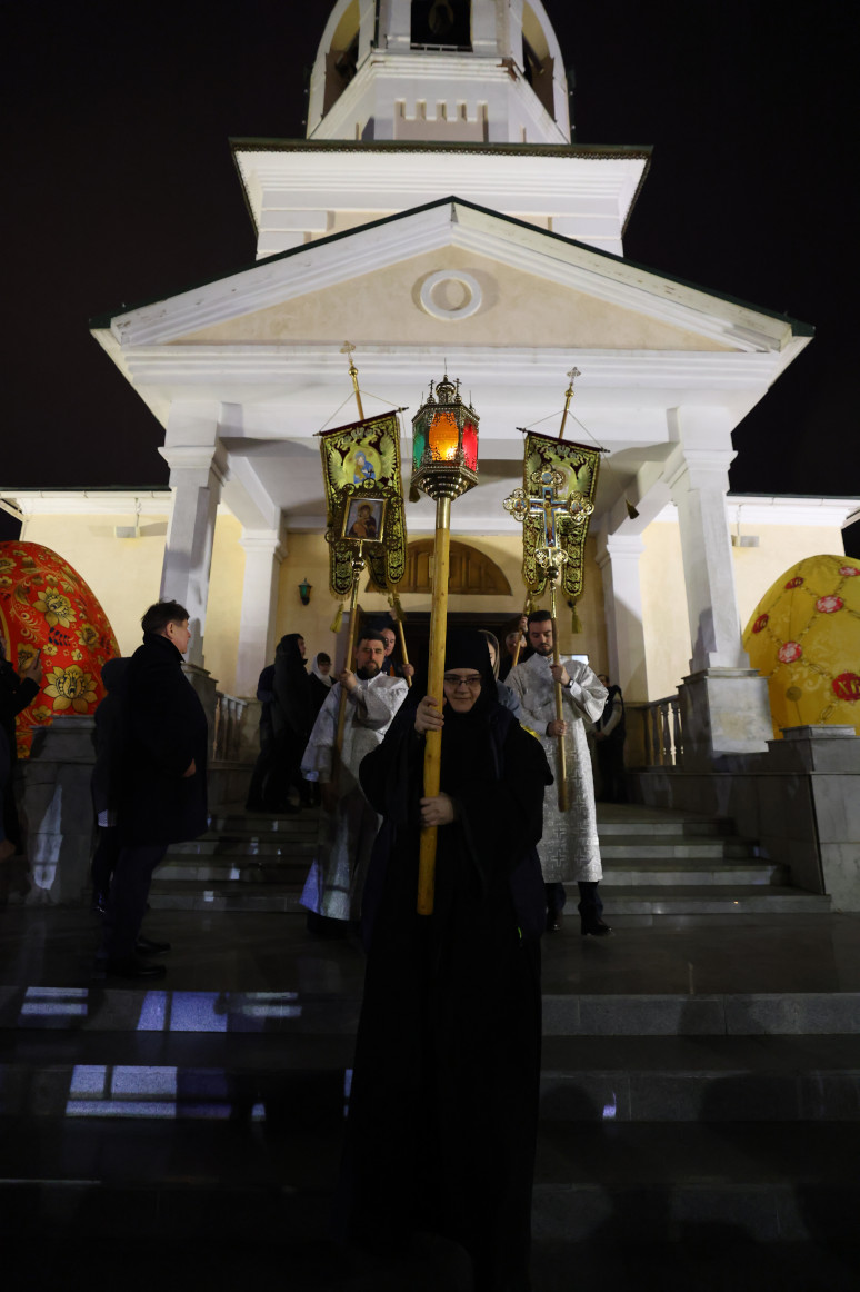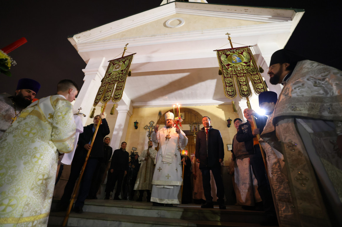 За богослужением было зачитано Пасхальное послание Святейшего Патриарха Кирилла.