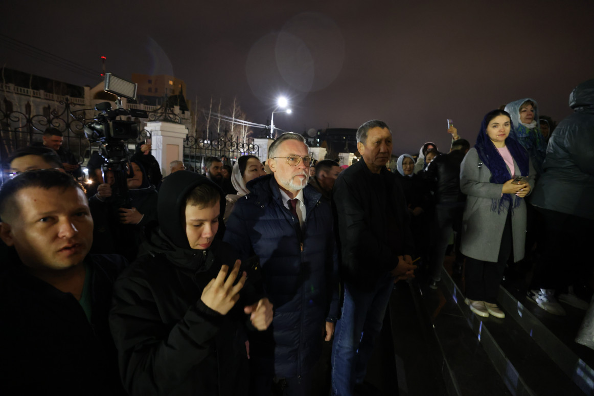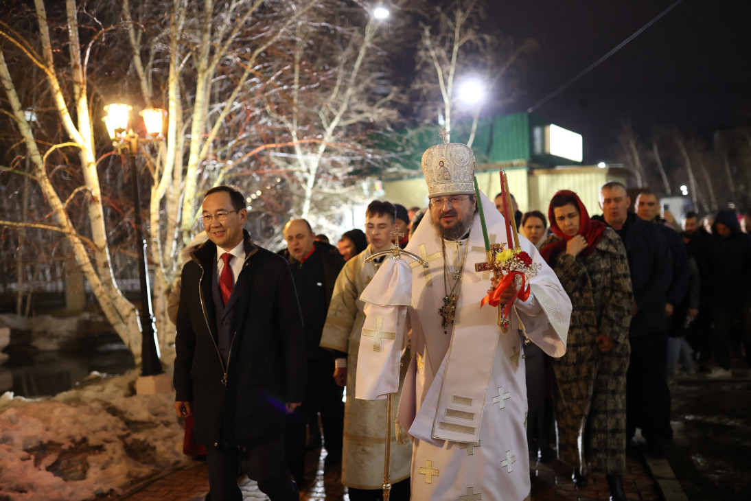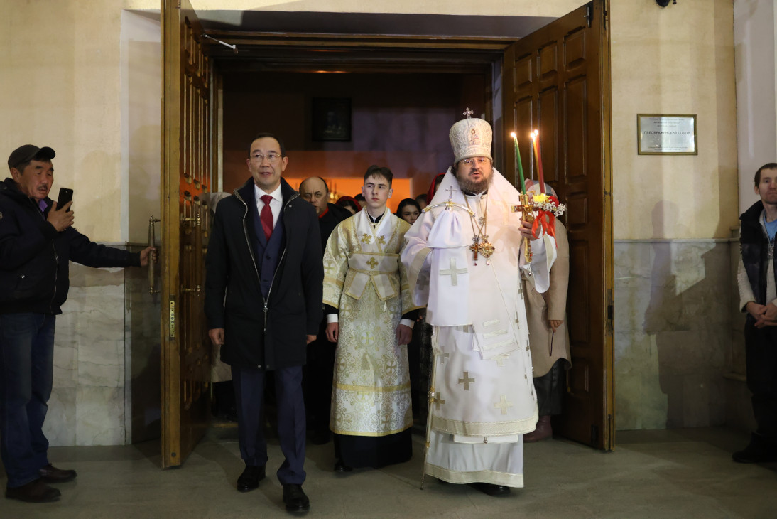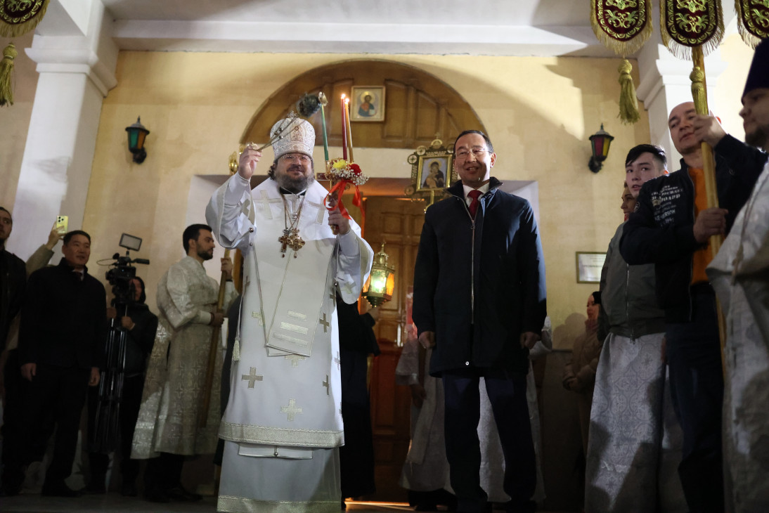 Вместе с прихожанами собора молились глава Республики Саха (Якутия) А. С. Николаев, председатель правительства Республики Саха (Якутия) К. Е. Бычков и представители администрации.