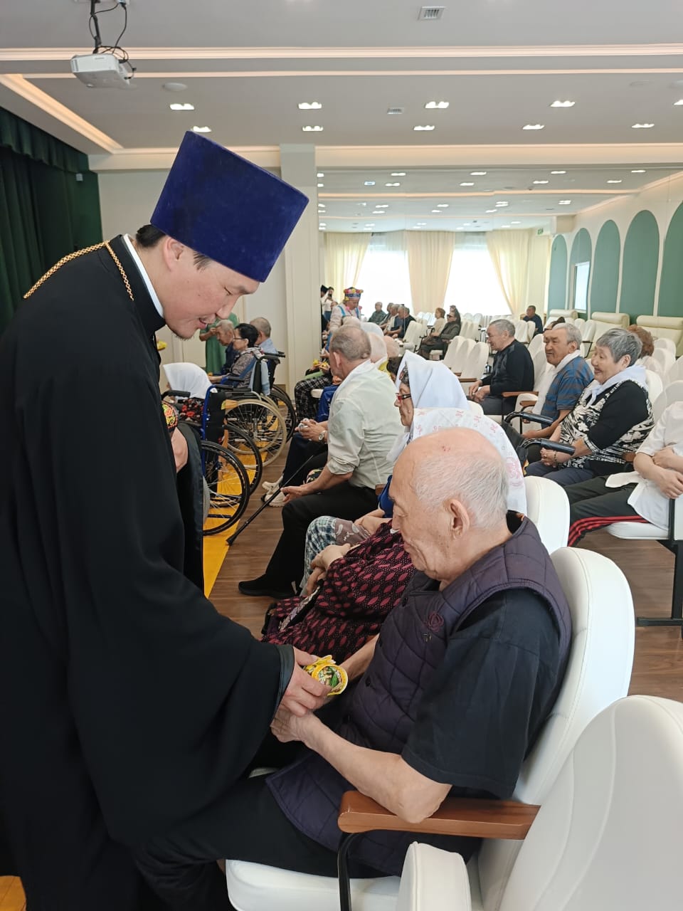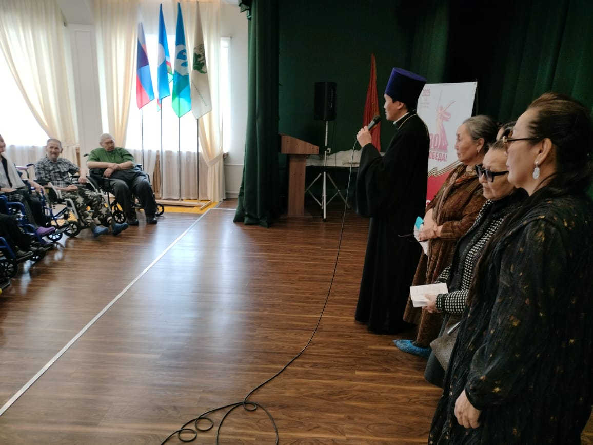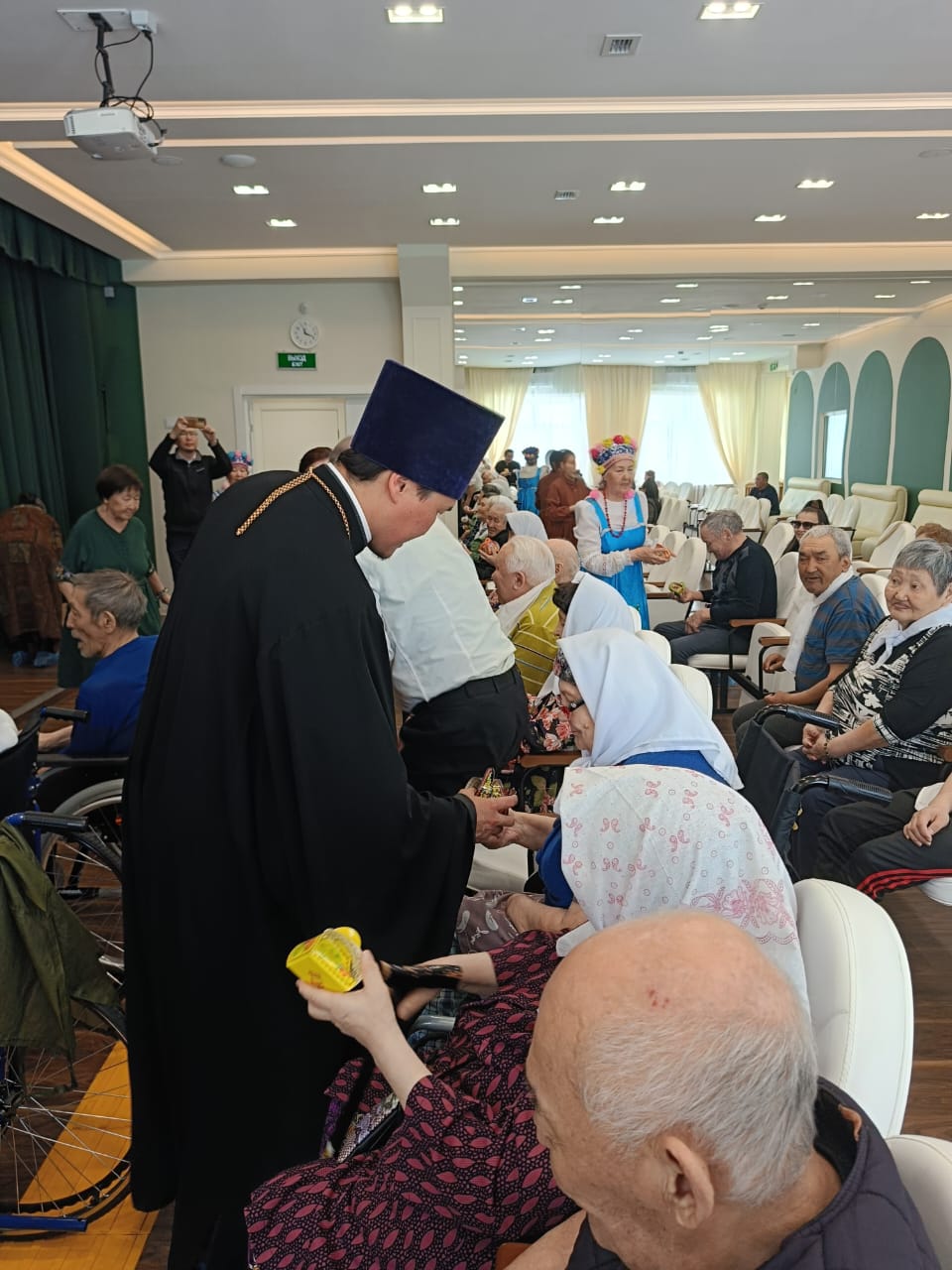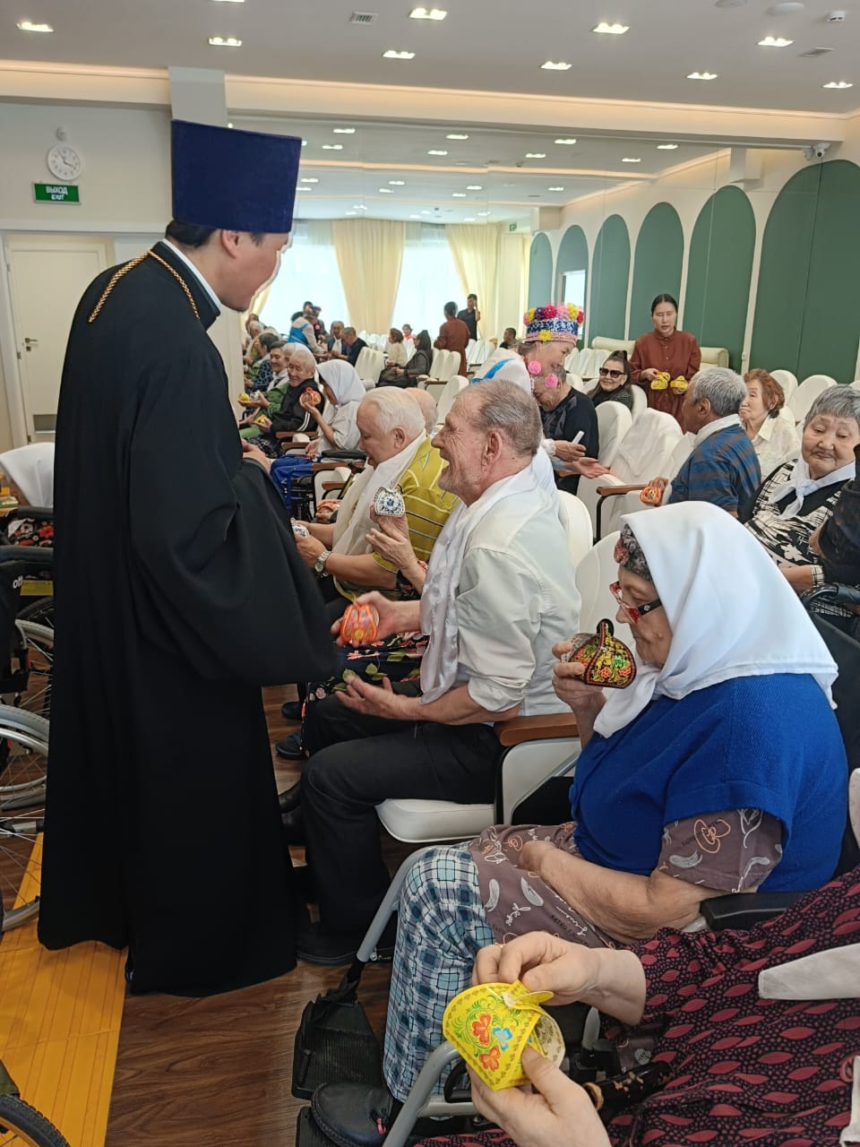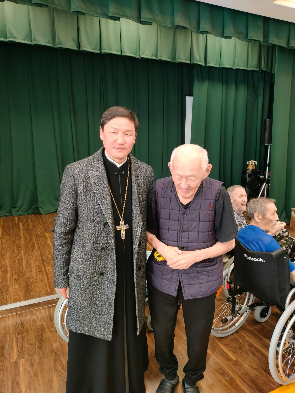 В день светлого праздника настоятель с приходом также посетили с Пасхальным поздравлением Намский социально-геронтологический центр им. Ядрихинской Т.К. Местные ансамбли выступили с концертными номерами.