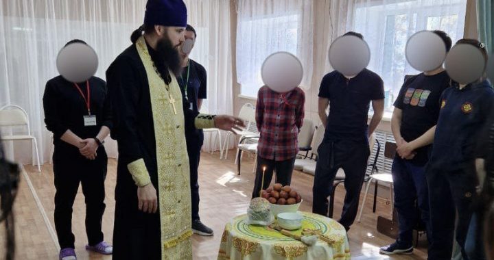 После Пасхального молебного пения, иерей Корнилий рассказал о смысле праздника, и передал каждому освященные яйца и куличи. Также желающие смогли побеседовать со священником на личные темы.