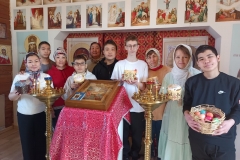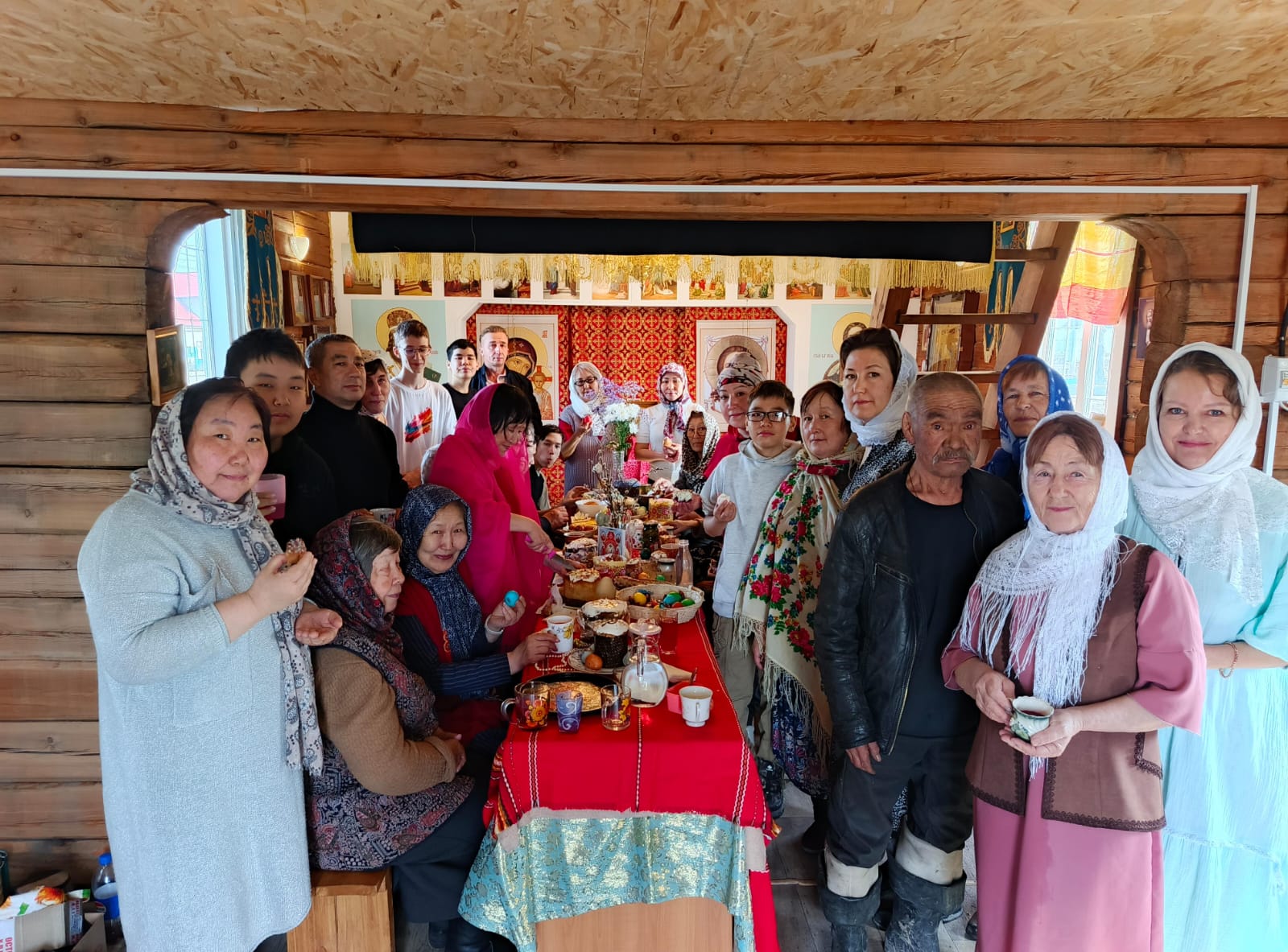 В праздник Светлого Христова Воскресения, 20 апреля 2025 года, Пасхальная служба прошла в новоосвященном храме святого благоверного князя Александра Невского села Амга. Прихожане самостоятельно пропели Пасхальную заутреню и освятили праздничные снеди.