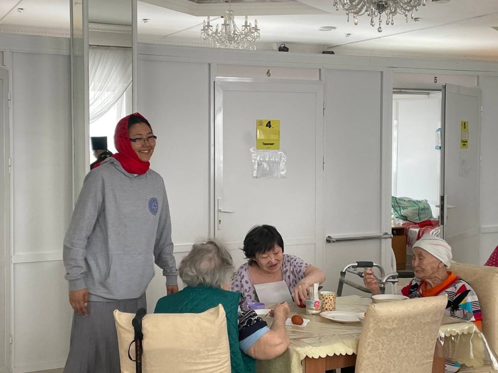 22 апреля 2025 года, во Вторник Светлой Седмицы православная молодежь Якутска во главе с руководителем епархиального отдела по делам молодежи иереем Святославом Малохатко посетила Якутский пансионат для пожилых людей «Счастье».