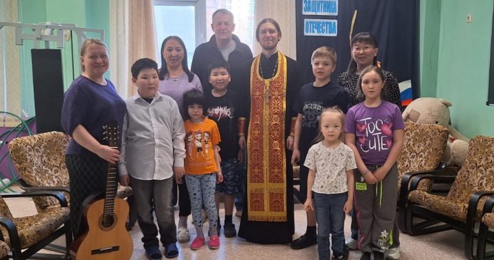 24 апреля 2025 года клирик Свято-Троицкого храма города Мирный иерей Николай Ушаков посетил реабилитационный центр «Харысхал» и школу-интернат. Священник поздравил детей с праздником, кратко рассказал им об истории праздника Пасхи, пожелал всем светлой пасхальной радости, окропил детей святой водой.