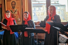 Затем, после поздравления отца настоятеля, все молящиеся были приглашены на праздничную трапезу на площади перед храмом.