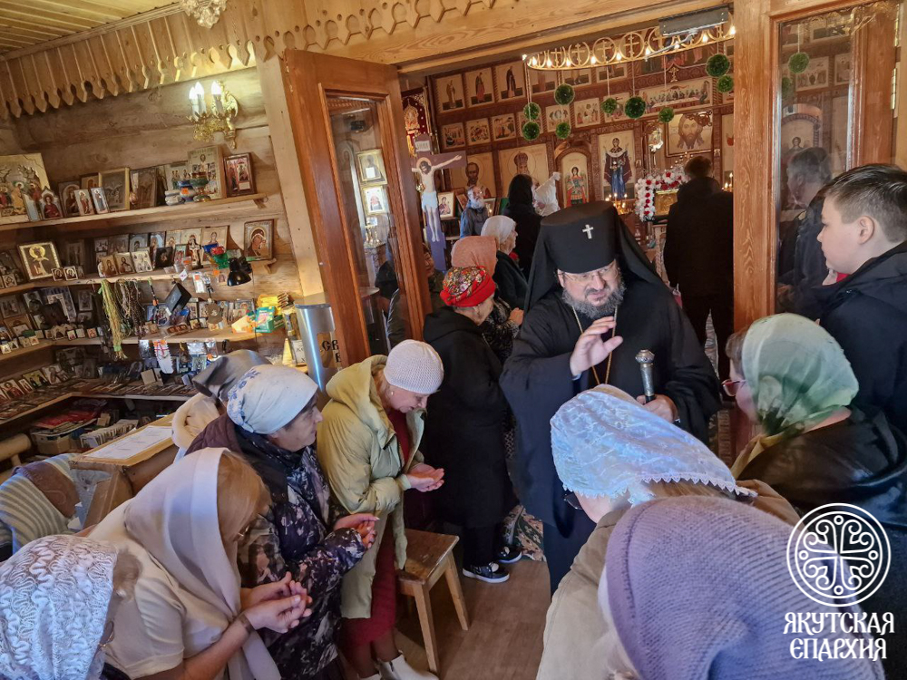 Приветствуя верующих после богослужения, владыка поздравил всех с продолжающимися днями Святой Пасхи и престольным праздником.