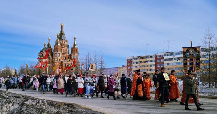 После Литургии состоялся праздничный Пасхальный крестный ход по улицам города. Шествие, посвященное Пасхе Христовой и Дню Великой Победы, в котором приняли участие глава города Артур Приходько, руководители предприятий, прихожане и работники городских предприятий.