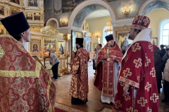 Его Высокопреосвященству сослужили настоятель храма иерей Александр Коробкин, протоиерей Павел Слепцов, иерей Александр Романенко и иеродиакон Алексий Строев.