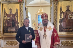 По завершении богослужения состоялся крестный ход вокруг храма, после которого Владыка Роман вручил награды Святейшего Патриарха Московского и всея Руси Кирилла. Ордена преподобного Серафима Саровского III степени были удостоены благочинный 1-го Центрального округа протоиерей Павел Слепцов и генеральный директор АО «Водоканал» города Якутска Кырджагасов Анатолий Андреевич.