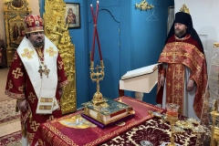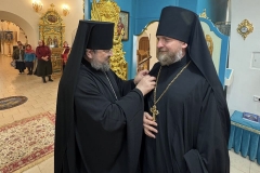 По окончании Литургии была вознесена молитва Пресвятой Богородице перед Ее иконой «Градоякутская» с обновленным киотом. Затем Владыка поздравил иеромонаха Никиту с днём рождения, вручив ему знак «За заслуги перед Якутской епархией».