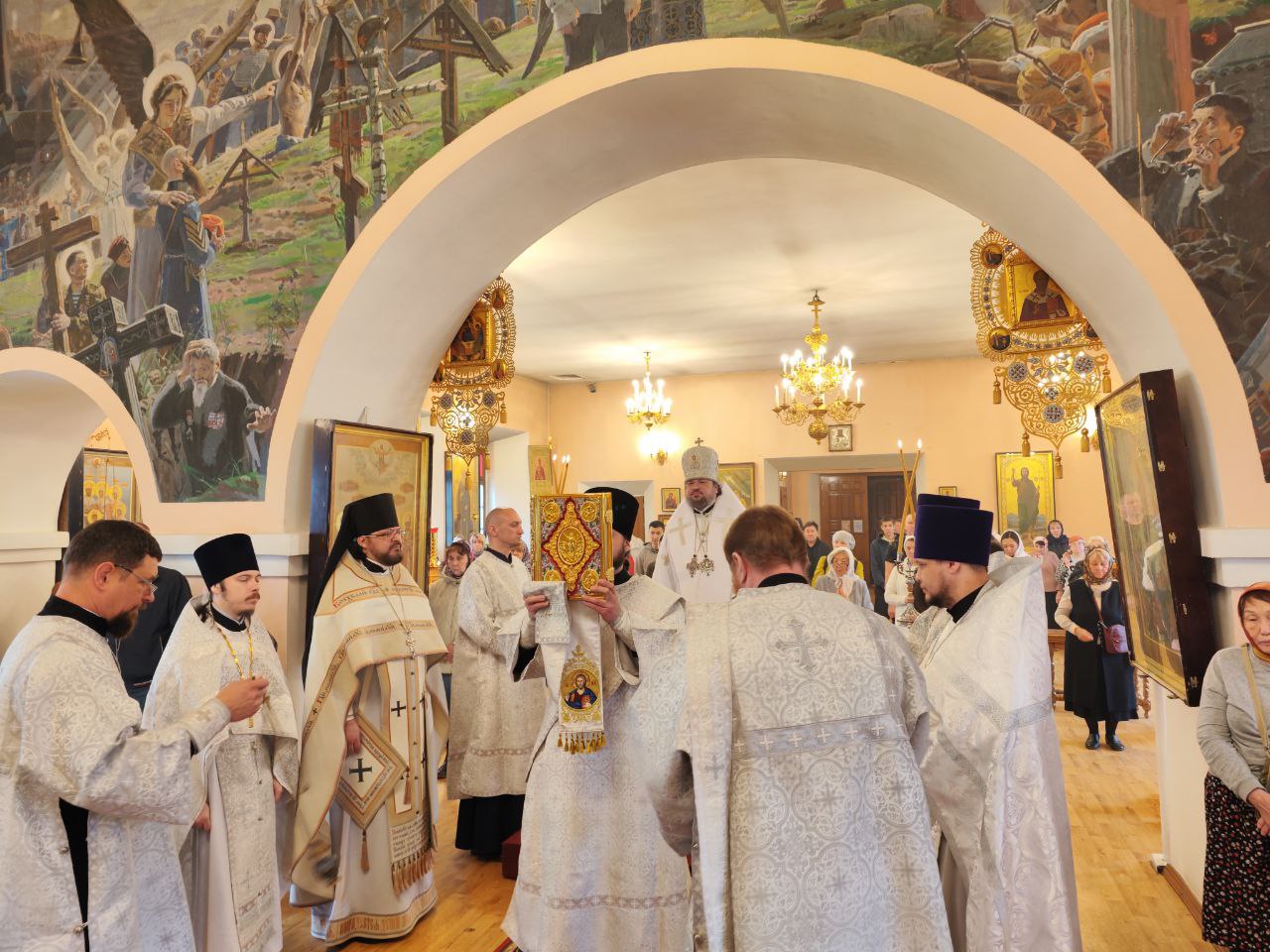 По окончании богослужения архиепископ Роман огласил Послание Святейшего Патриарха Кирилла в связи с празднованием 1700-летия Первого Вселенского собора и освятил колокола для храма Всемилостивого Спаса, который находится в посёлке Белая Гора Абыйского улуса Республики Саха (Якутия).