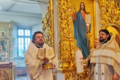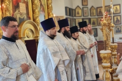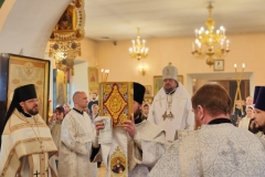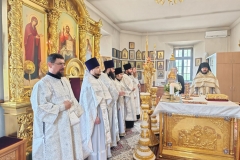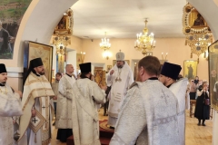 За богослужением архипастырю сослужили настоятель храма иеромонах Никандр (Горбатюк) и соборный клир.