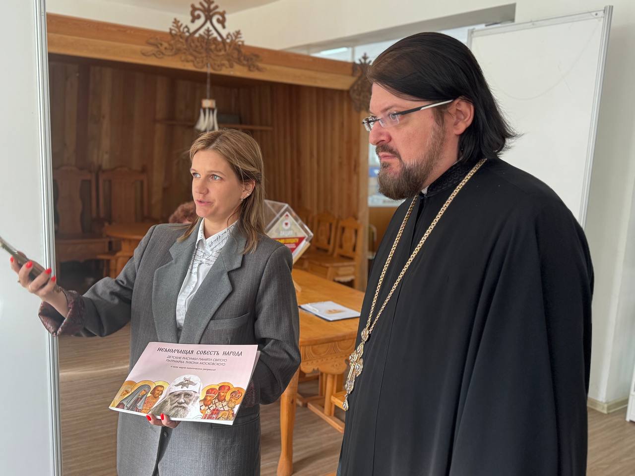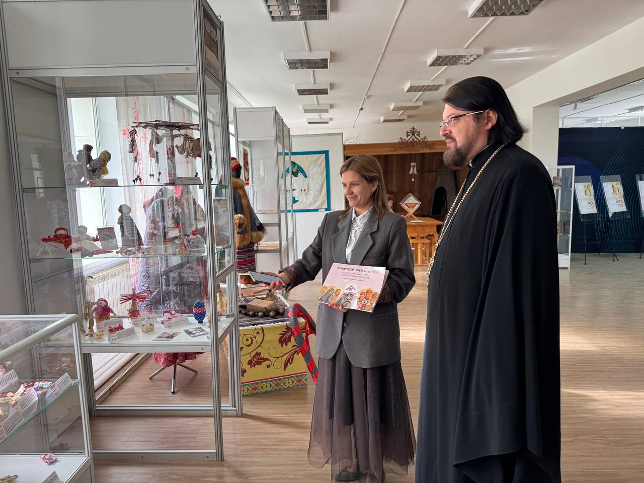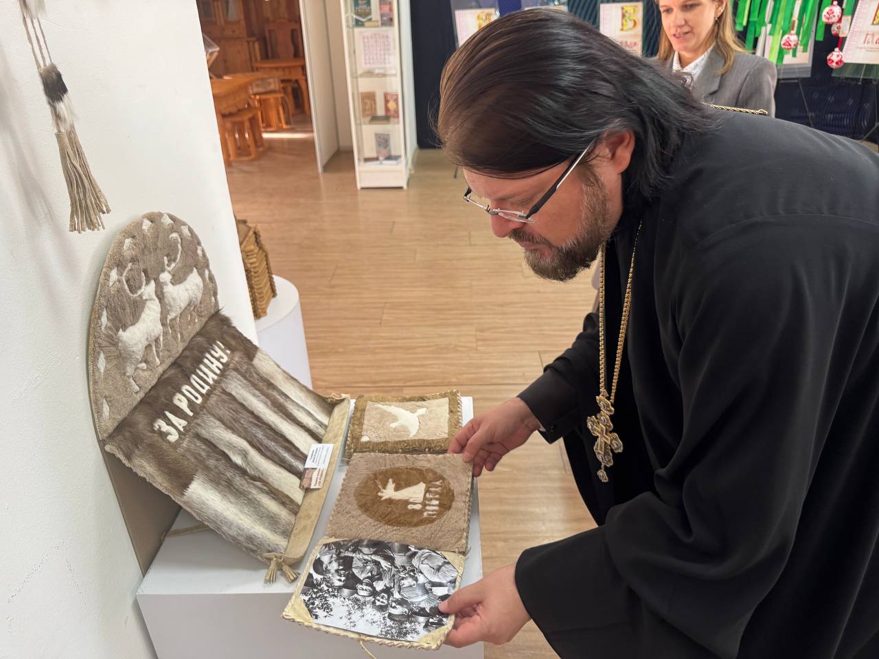 Священник ознакомился с экспозицией, приуроченной к декаде русского языка и встретился с руководителем Русской общины Республики Саха (Якутия) Егоровой Е.Е. Выставка проходит в Доме дружбы народов им. А.Е. Кулаковского.