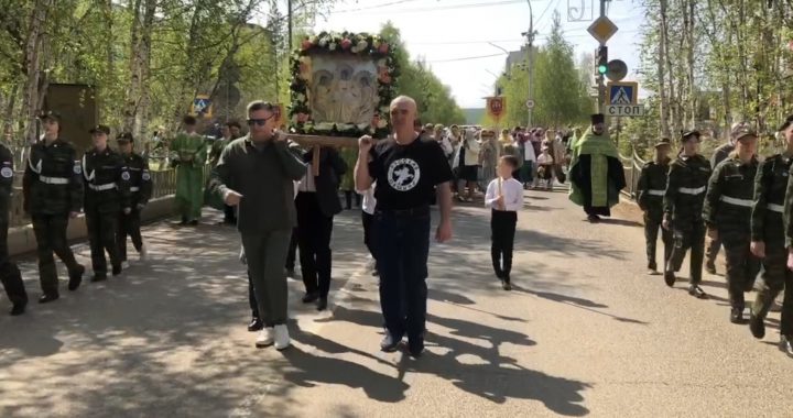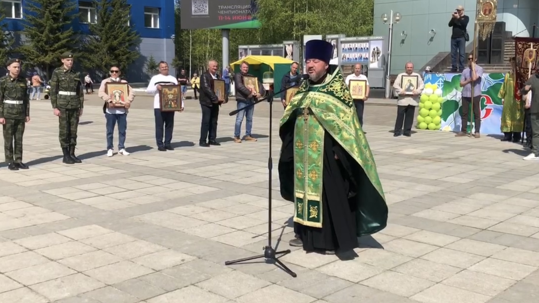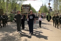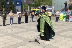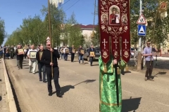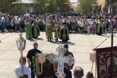 Крестный ход прошел по Ленинградскому проспекту до главной городской площади, где состоялось торжественное молебное пение в завершении которого отец-благочинный возгласил многолетие всем жителям города.