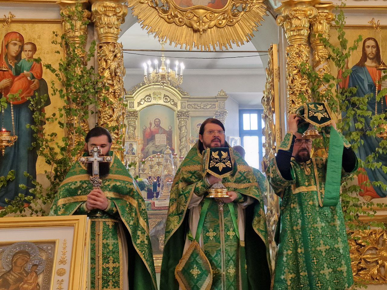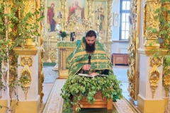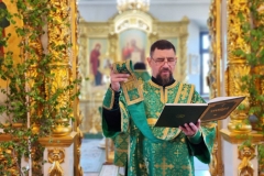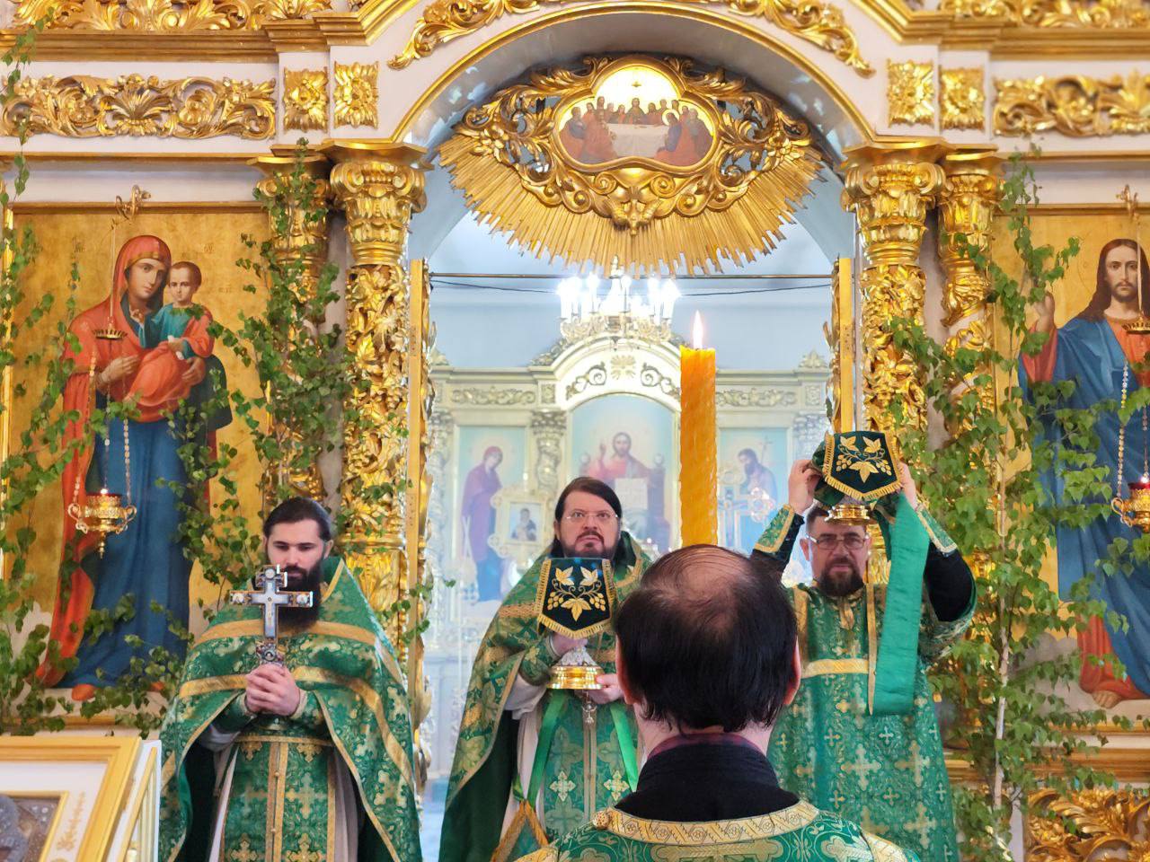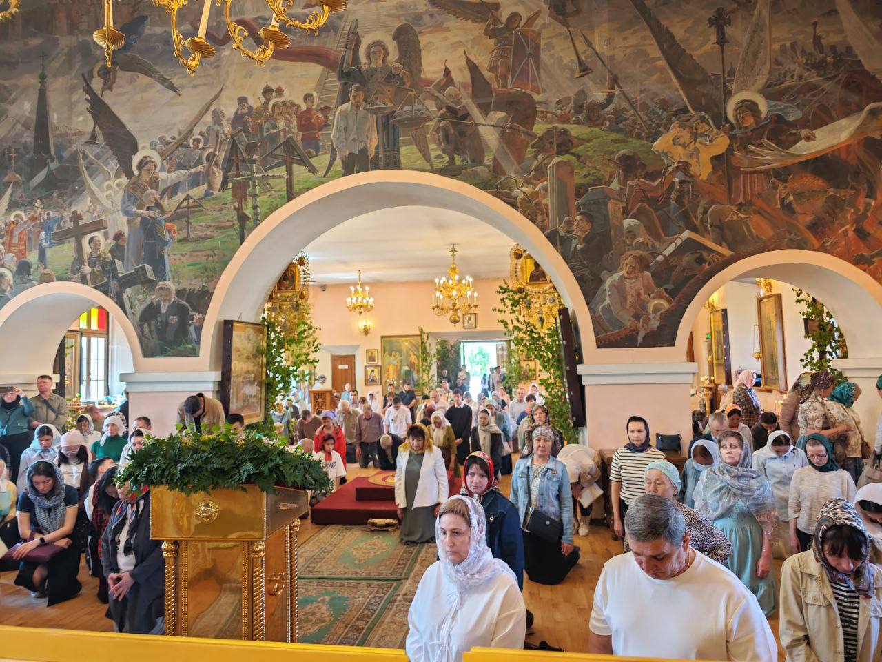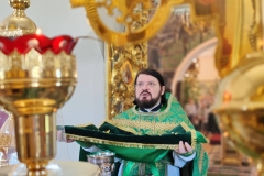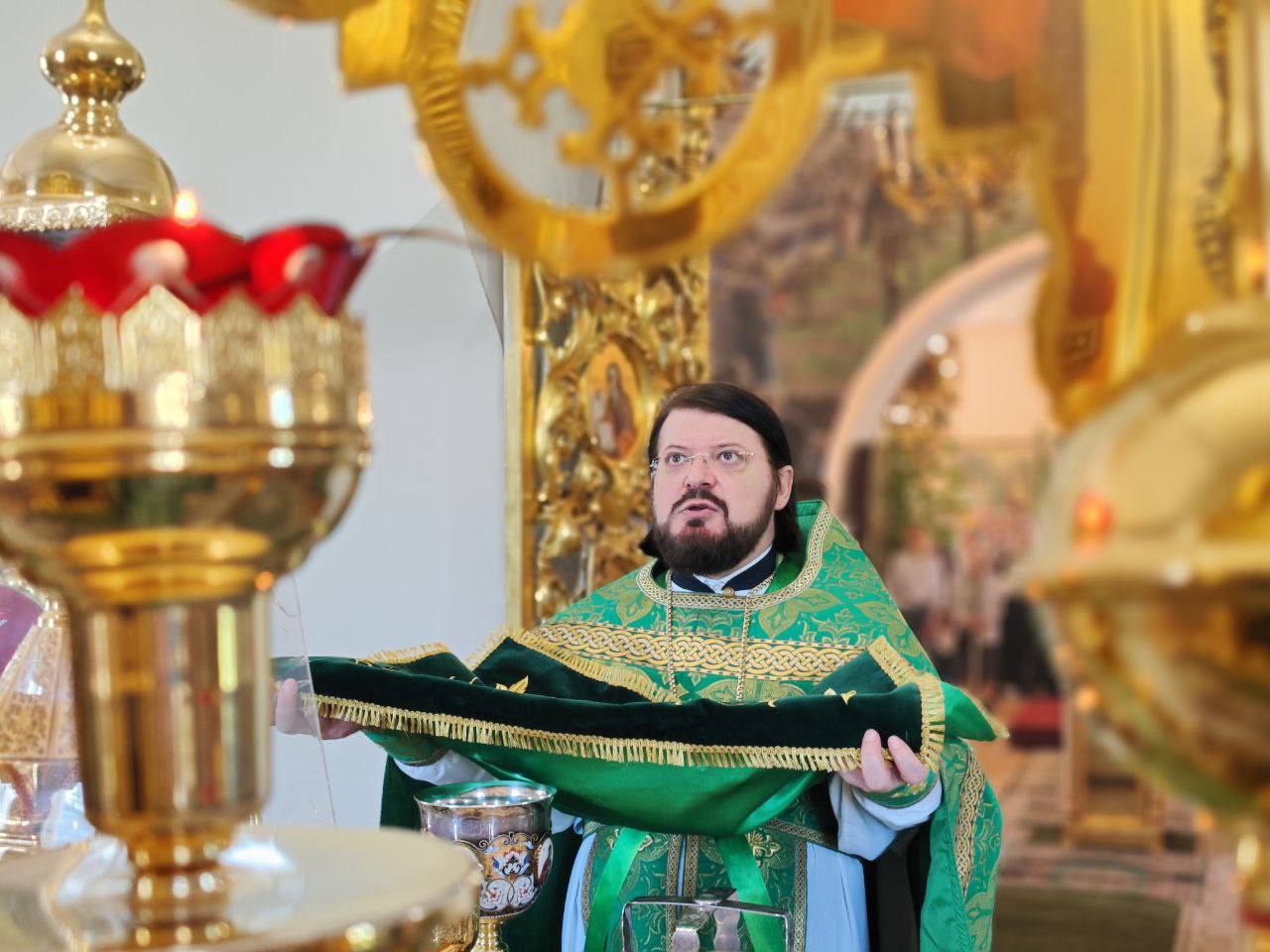 8 июня 2025 года, в праздник Пятидесятницы, день Святой Троицы, в Преображенском кафедральном соборе совершались, по обычаю, две Божественные Литургии: ранняя на якутском и поздняя, которую возглавил настоятель иеромонах Никандр (Горбатюк), на церковнославянском языке.