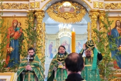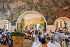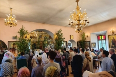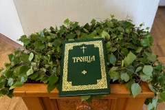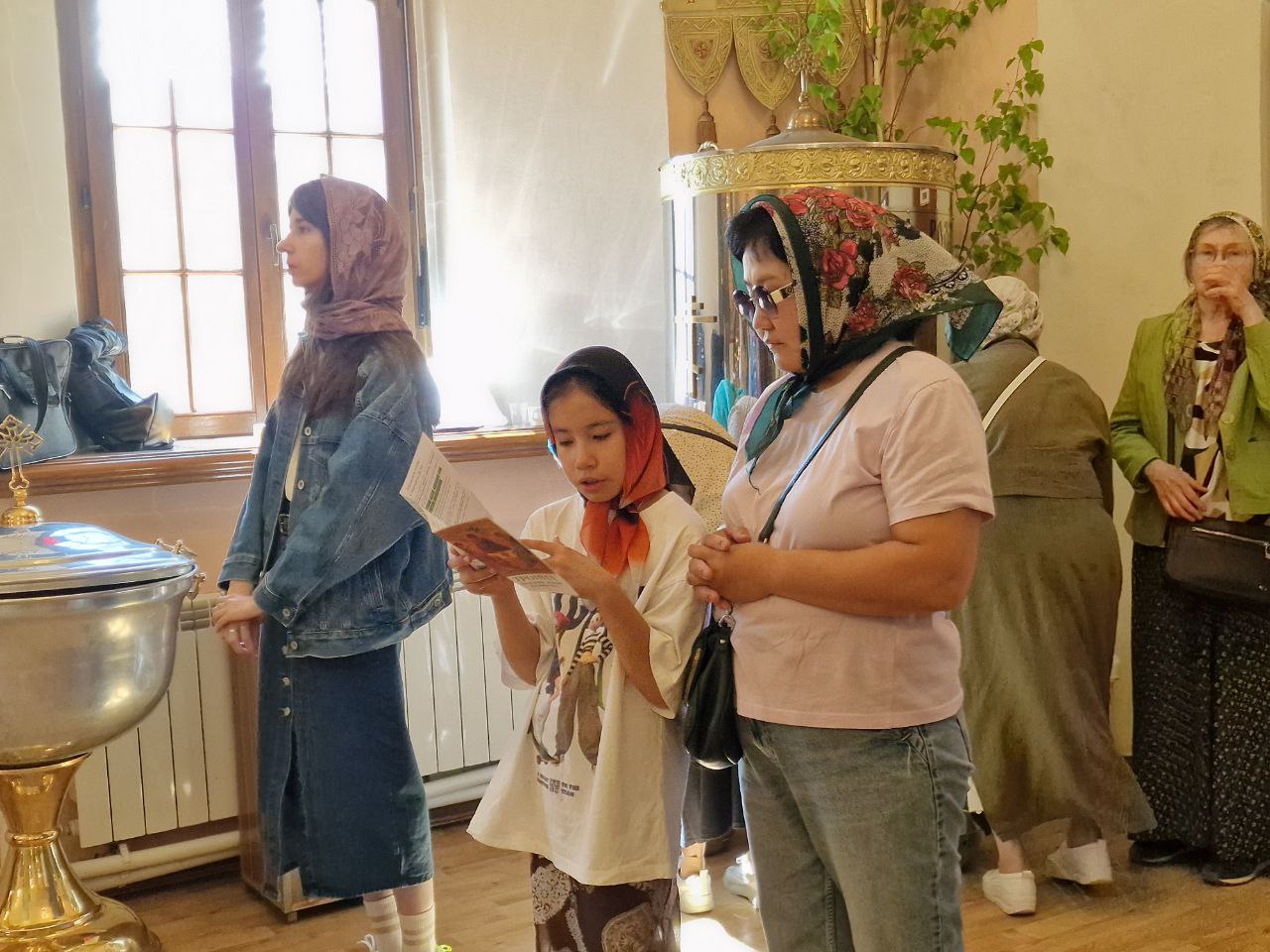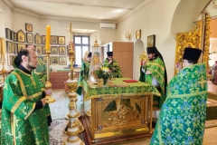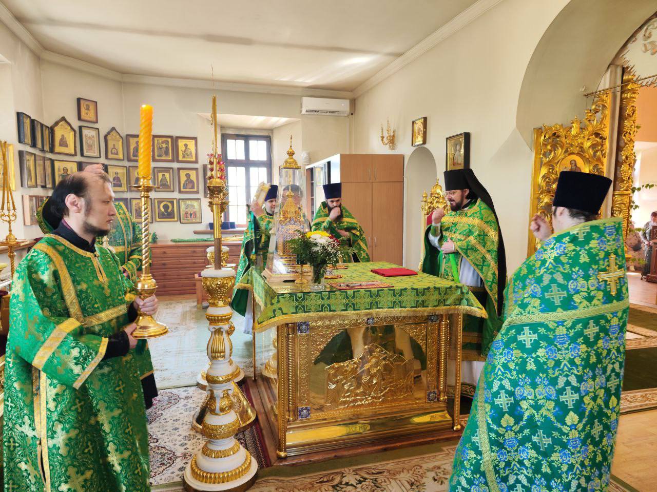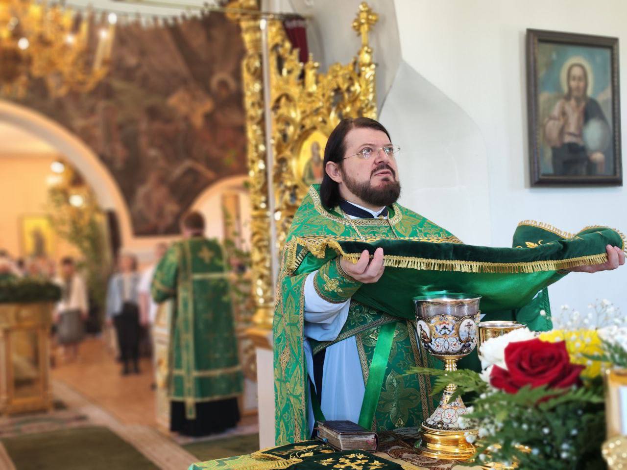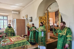 8 июня 2025 года, в праздник Пятидесятницы, день Святой Троицы, в Преображенском кафедральном соборе совершались, по обычаю, две Божественные Литургии: ранняя на якутском и поздняя, которую возглавил настоятель иеромонах Никандр (Горбатюк), на церковнославянском языке.