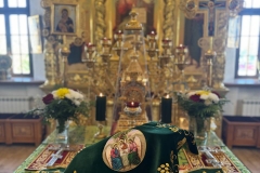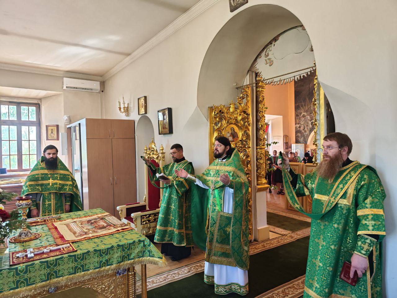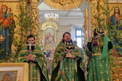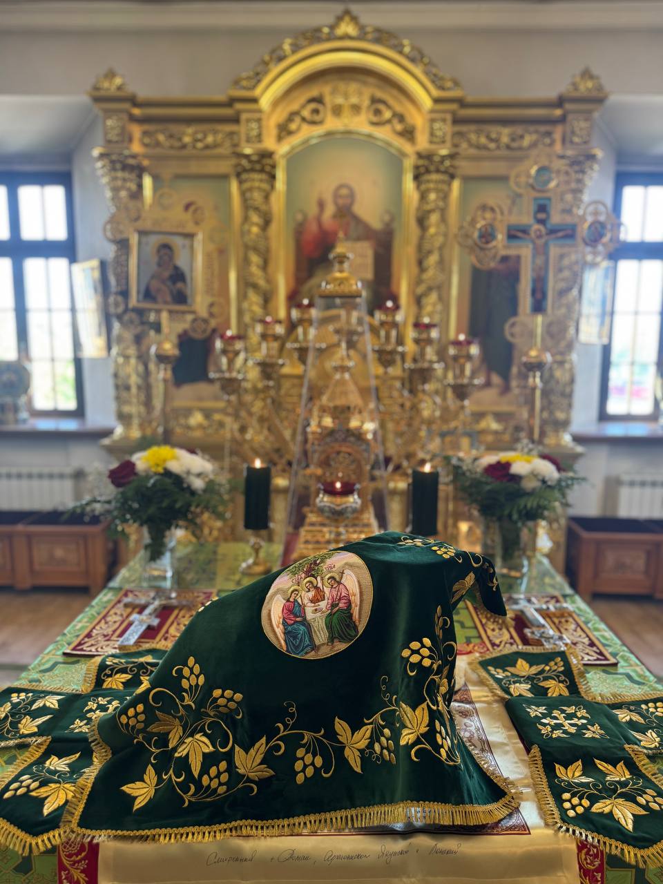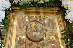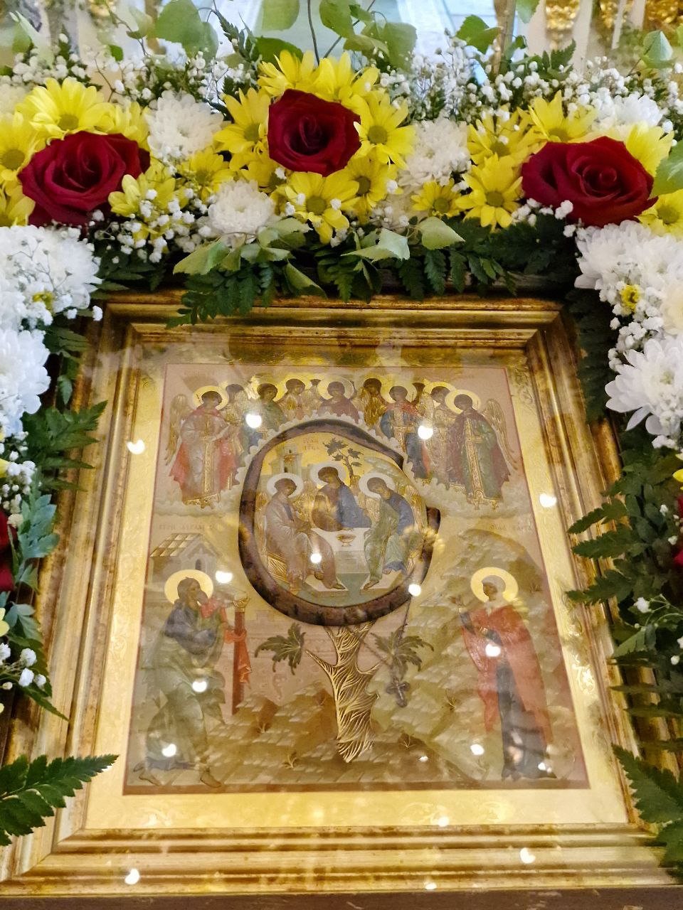В качестве праздничной иконы на центр храма была вынесена икона Пресвятой Троицы («Гостеприимство Авраама»), написанная на коре Мамврийского дуба — дерева, под которым библейскому праотцу Аврааму явилась Троица в виде трех вестников Божьих.