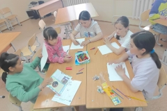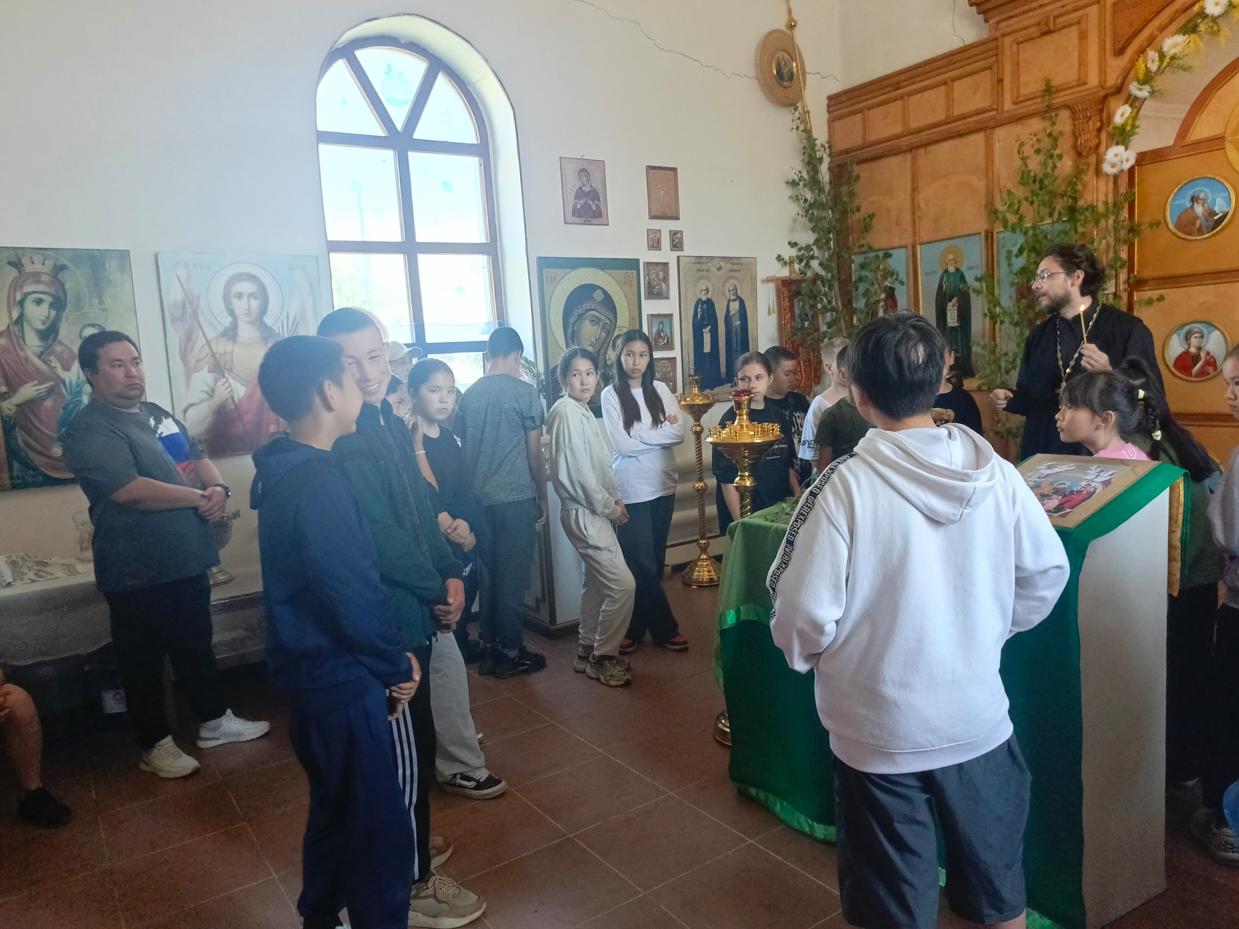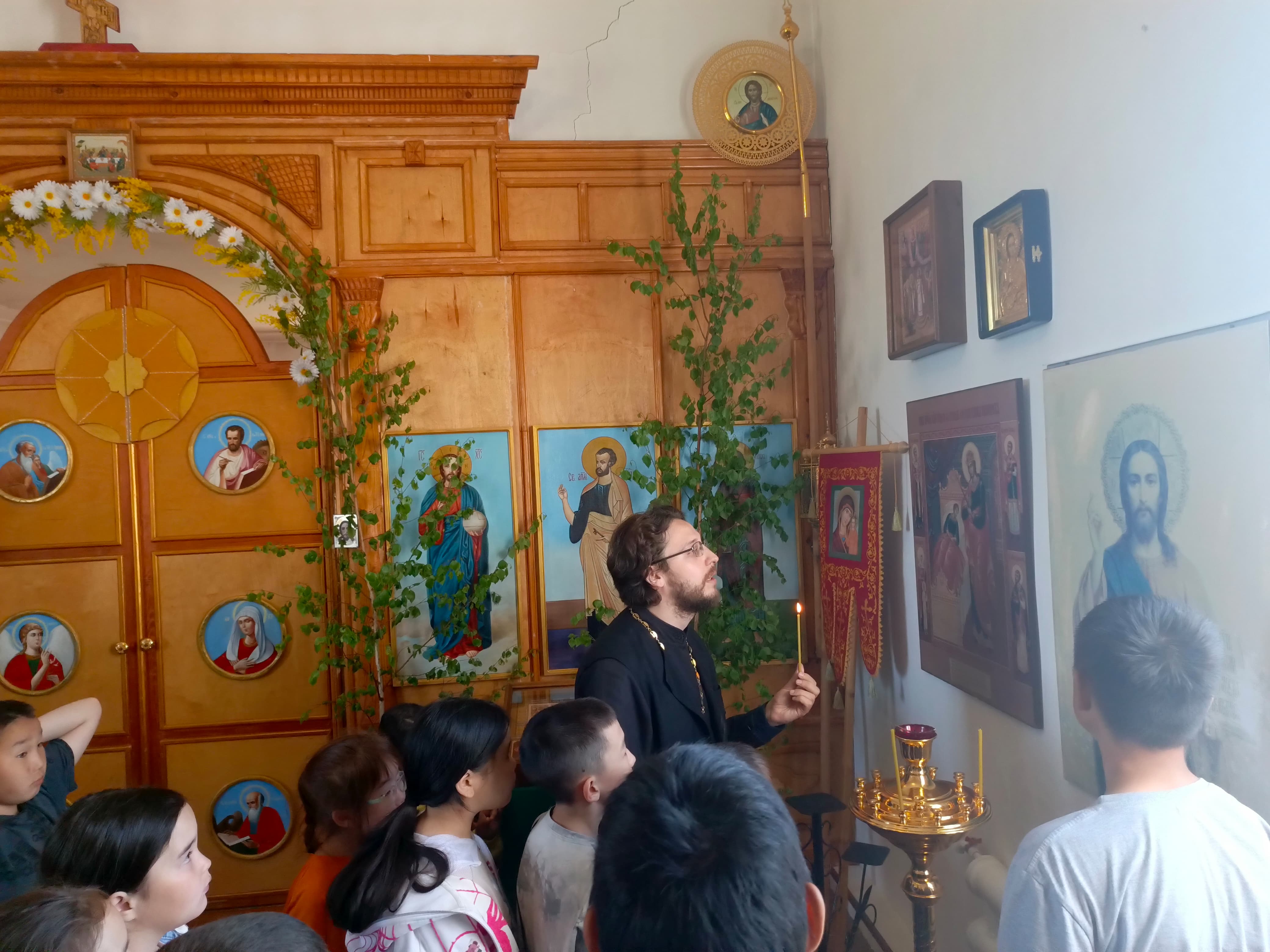 Преподаватели обучают ребят разным техникам, и дети уже начали работать над рисунками и поделками, а также встретились с настоятелем прихода, благочинным 3 Центрального округа иеромонахом Тихоном (Воробьевым). Во время встречи они получили возможность побеседовать со священником на мировоззренческие и духовные темы. Многие посетили храм, а желающие после экскурсии поставили свечи и помолились.