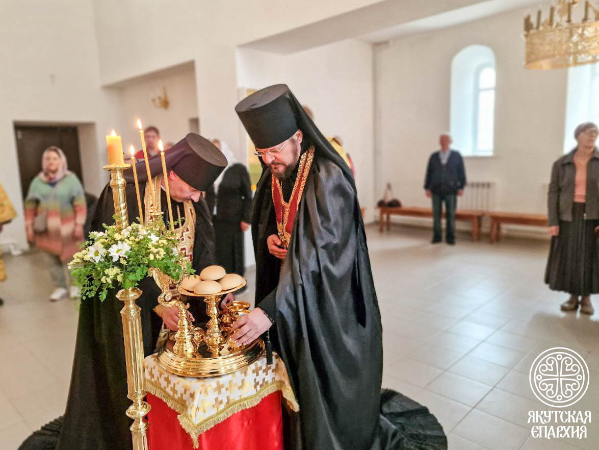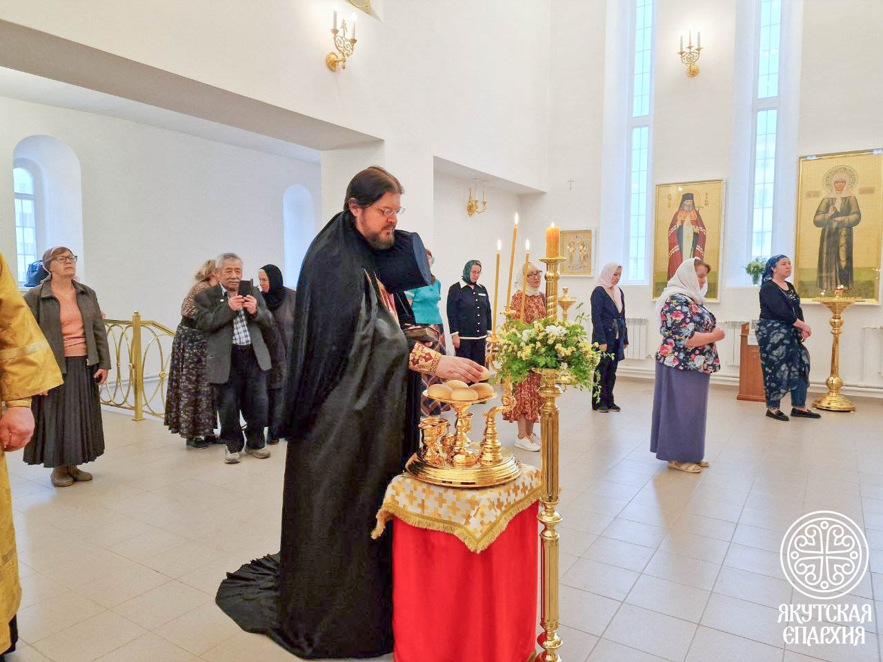 14 и 15 июня 2025 года, в канун недели Всех святых и сам день праздника, совершались богослужения во Всехсвятском храме-памятнике воинам-якутянам города Якутска. Всенощное бдение и праздничную Божественную Литургию по благословению архиепископа Якутского и Ленского Романа возглавил благочинный Городского округа секретарь Якутской епархии иеромонах Никандр (Горбатюк). Ему сослужил наместник храма иеромонах Гермоген (Рубцов).