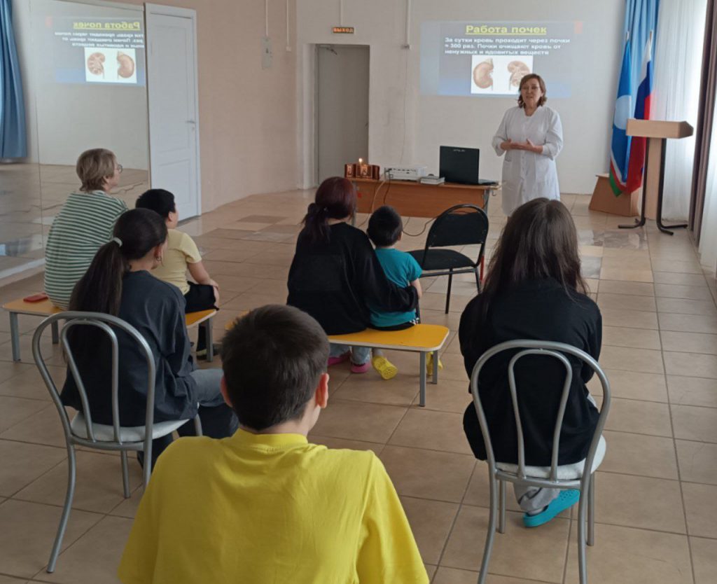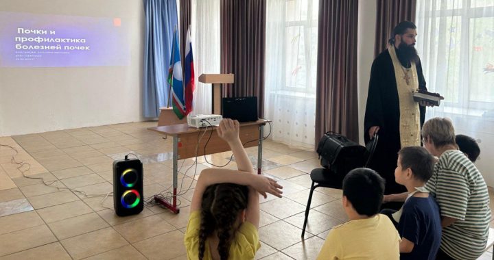 После молебного пения о здравии за которым молились дети и воспитатели, приглашённый гость — прихожанка Якутского кафедрального собора Антонина Ивановна Анисимова, врач-нефролог, провела лекцию для детей на тему: «Здоровье почек». Дети узнали о пагубном влиянии на здоровье вредных привычек, вредной пище, а также о правилах, которые помогают быть здоровыми и счастливыми.