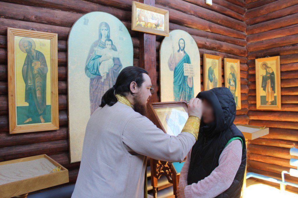 После молебна священник помазал осуждённых освященным елеем,  рассказал о дне памяти, духовных подвигах русских святых и совершил таинство Покаяния у желающих.