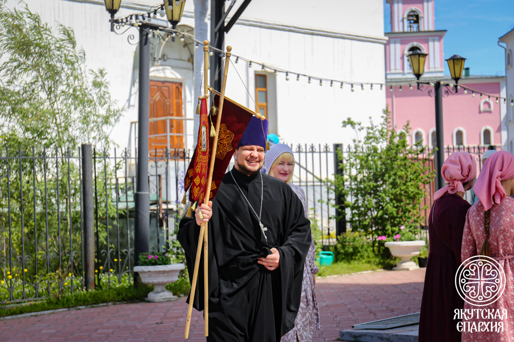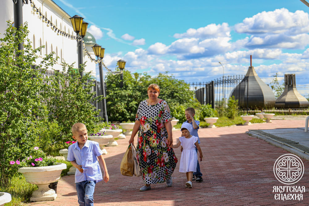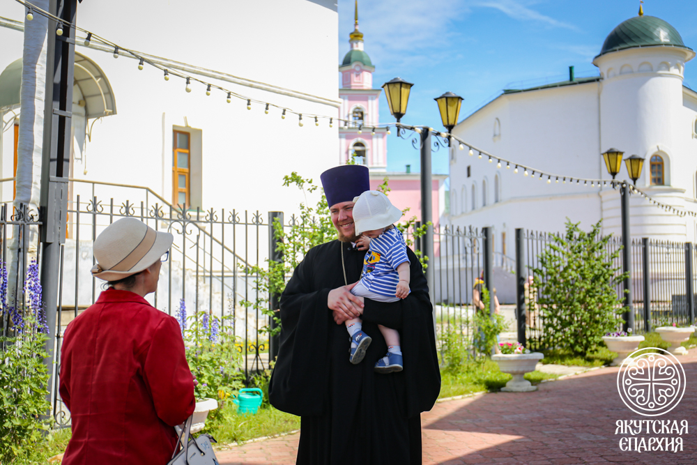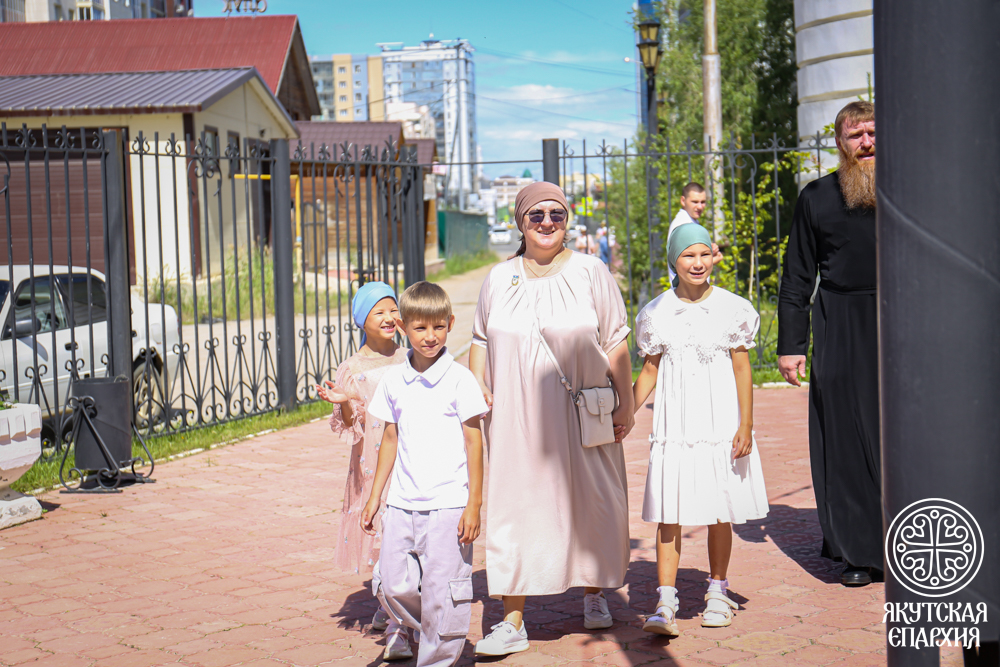 За богослужением молились многодетные семьи и молодежь г. Якутска, а также прихожане городских храмов, собравшиеся на молитву о семейном благополучии.