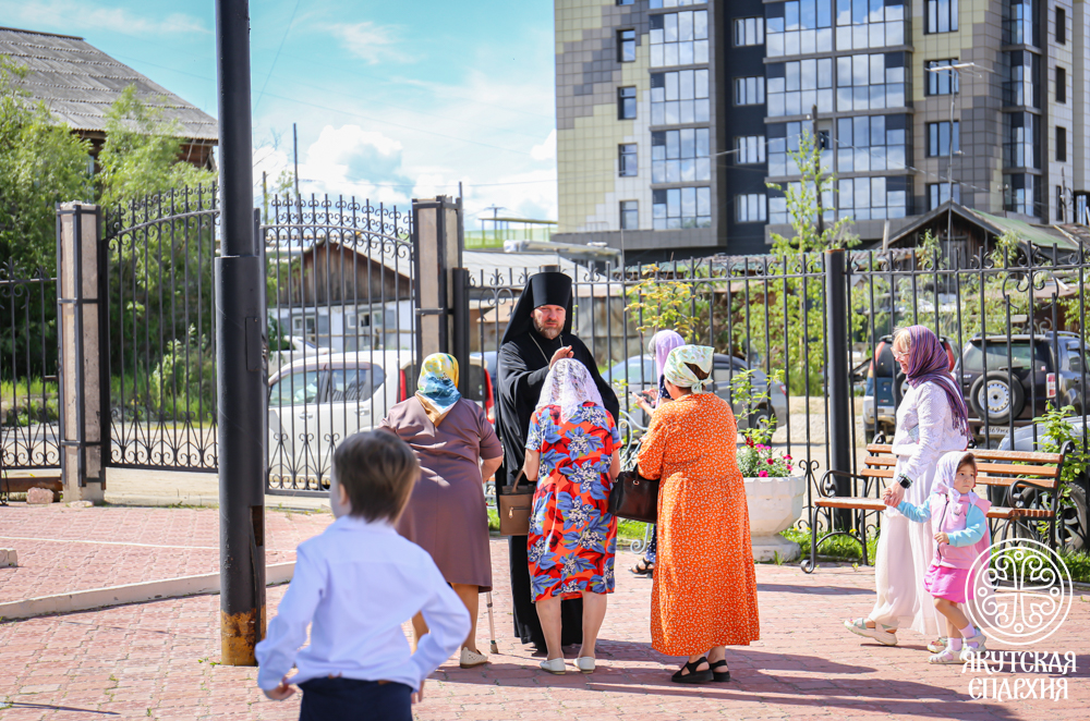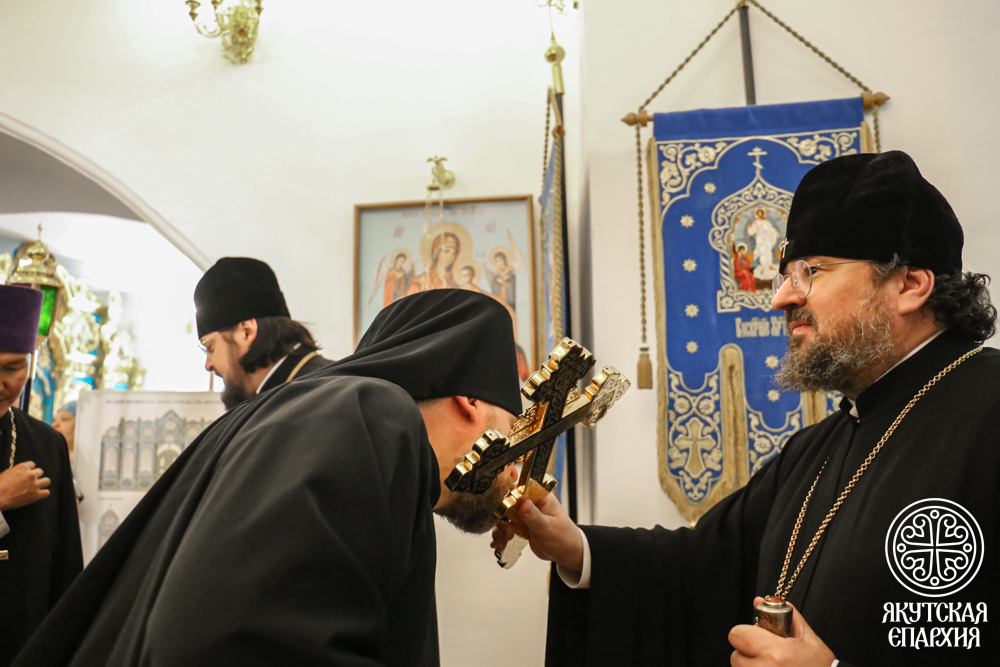 Ему сослужили секретарь Якутской епархии иеромонах Никандр (Горбатюк), наместник храма Рождества Богородицы иеромонах Никита (Мельниченко) и духовенство Городского благочиния.