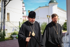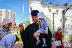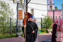 После молебного пения состоялся крестный ход вокруг храма с иконой святых Петра и Февронии Муромских с частицей их честных мощей. Богослужебные песнопения исполнил хор Епархиальных певческих курсов.