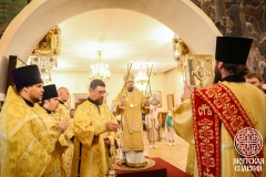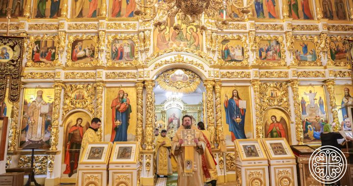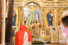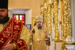 За богослужением архиерею сослужили клирики кафедрального собора и сослужащее духовенство.