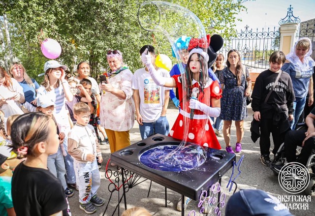 После торжественной Божественной литургии, на площади Преображенского кафедрального собора дети смогли реализовать свой творческий потенциал в игре с аниматорами и прокатиться на пони. В завершение мероприятия состоялось шоу мыльных пузырей и праздничное чаепитие.