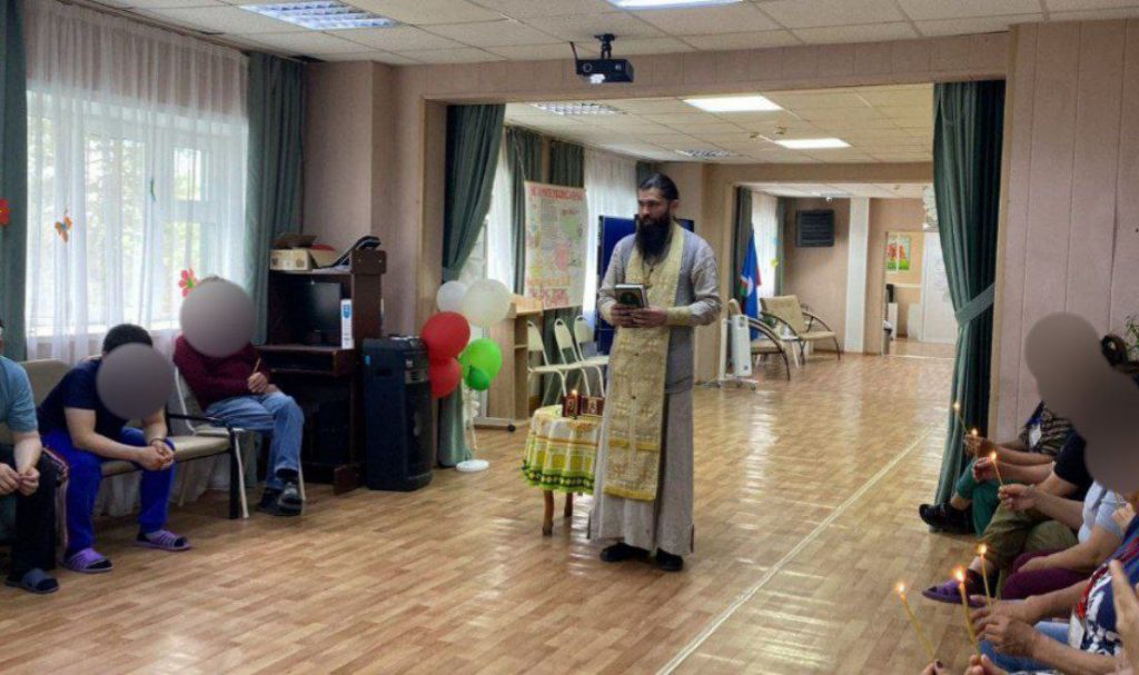 После молебна священник провёл беседу с пациентами, ответил на вопросы и совершил Таинство Покаяния. Также в этот день было совершено Таинство Крещения, которое приняли 9 человек. В заключении встречи священник передал проживающим угощения.