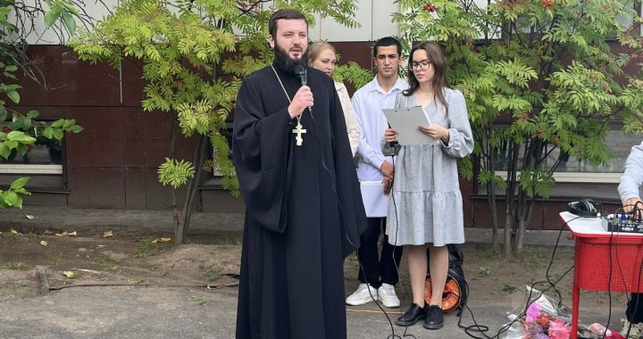 От лица духовенства города, студентов напутствовал и поздравил клирик храма святителя Иннокентия митрополита Московского иерей Симеон Михайлов.