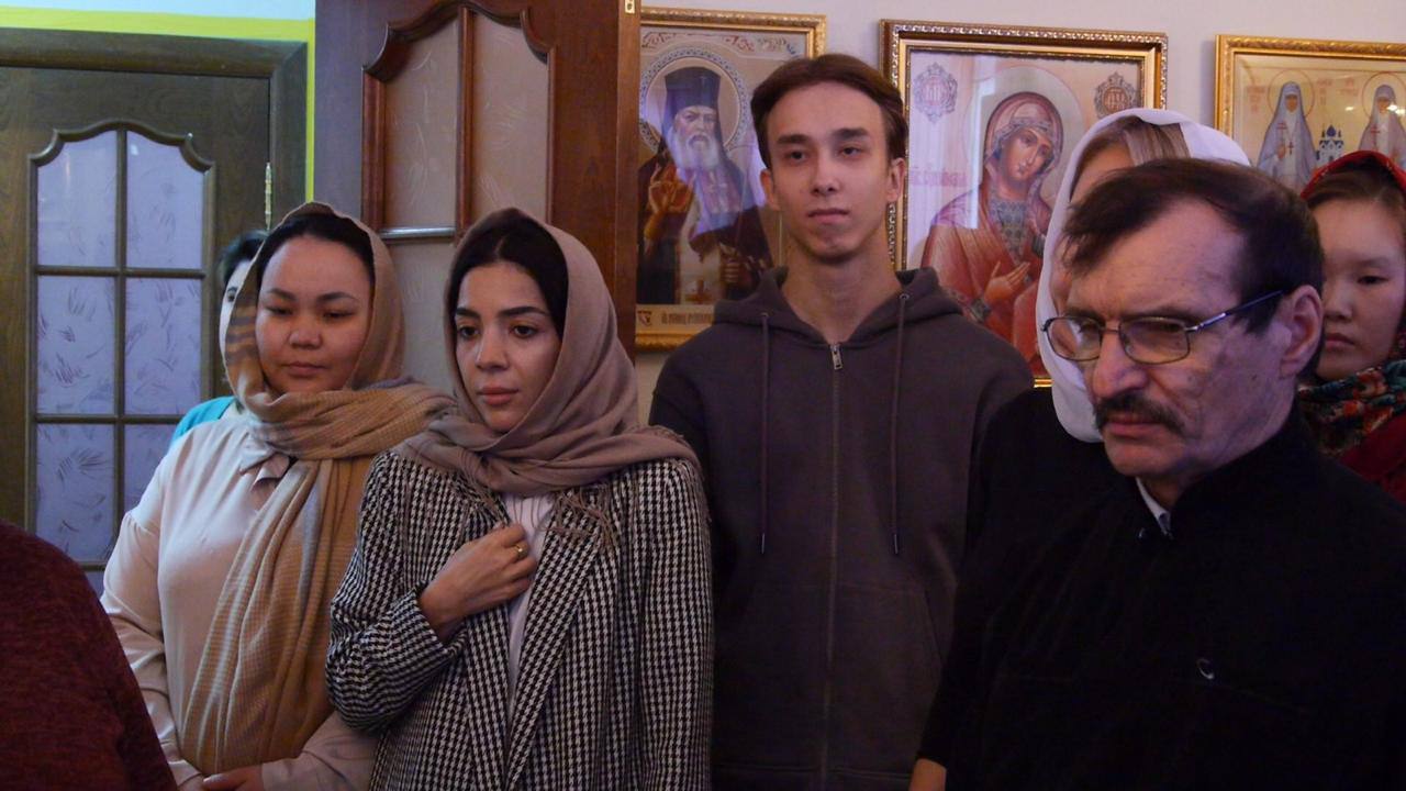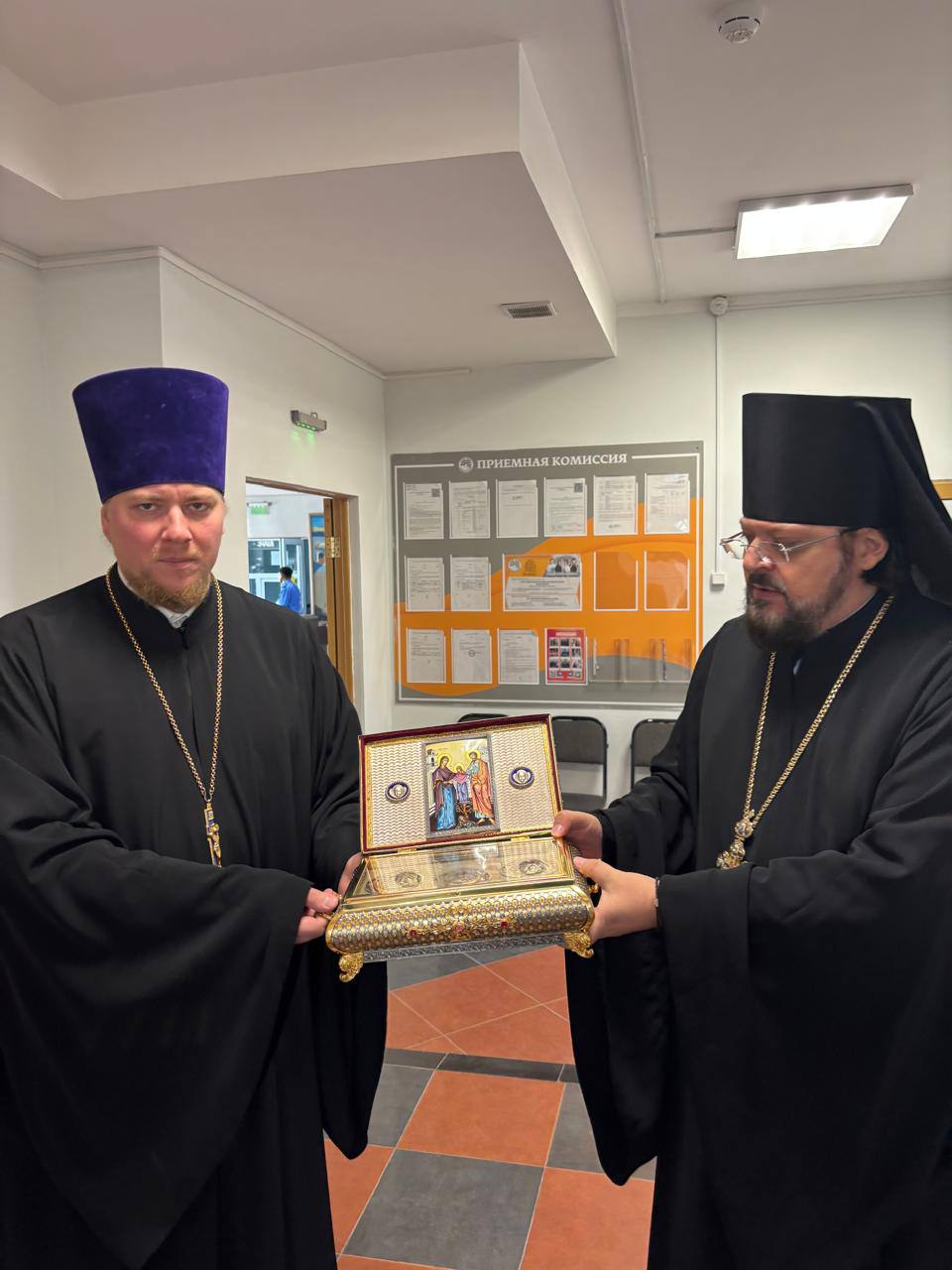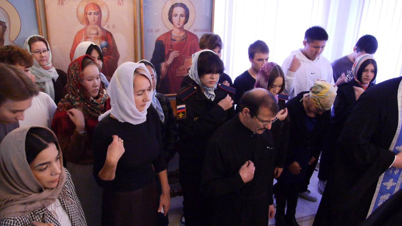 Священники совершили молебное пение перед святыней, по окончании которого к ней смогли приложиться руководство учебного заведения, директор Колледжа Л.Н. Цой, преподавательский состав и обучающиеся студенты.