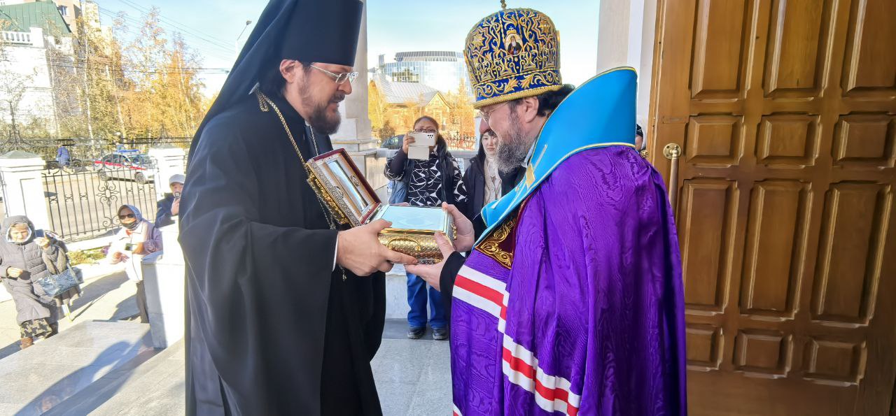 18 сентября 2025 года в Преображенском кафедральном соборе г. Якутска состоялась встреча ковчега с частью Пояса Пресвятой Богородицы и частицами мощей святых праведных Иоакима и Анны — Ее благочестивых родителей.
