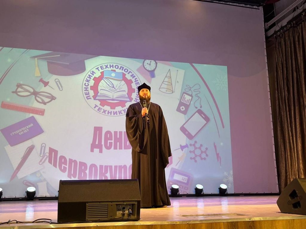 Клирик Ленского благочиния поучавствовал во Дне посвящения в первокурсники Ленского технологического техникума