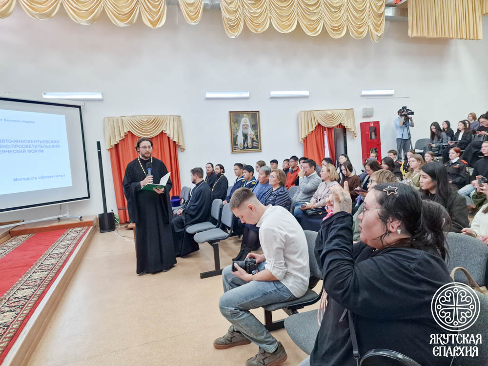 6 октября 2025 года в Межъепархиальном центре подготовки церковных специалистов Якутской епархии состоялось открытие XIV Свято-Иннокентьевского духовно-просветительского студенческого форума. Мероприятие проводится в рамках празднования 155-летия Якутской епархии.