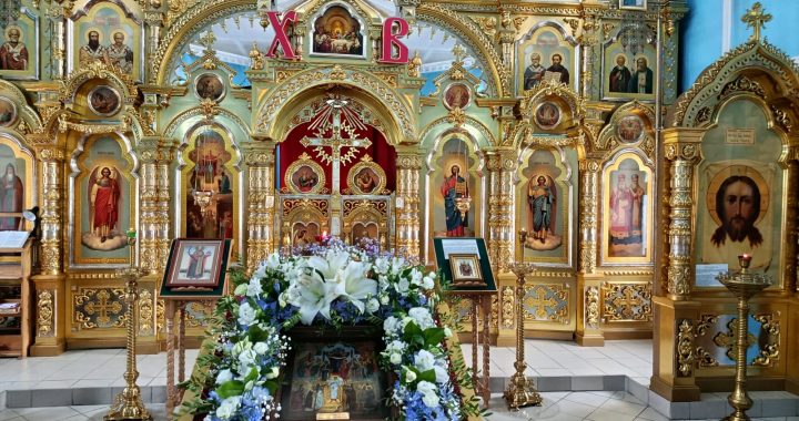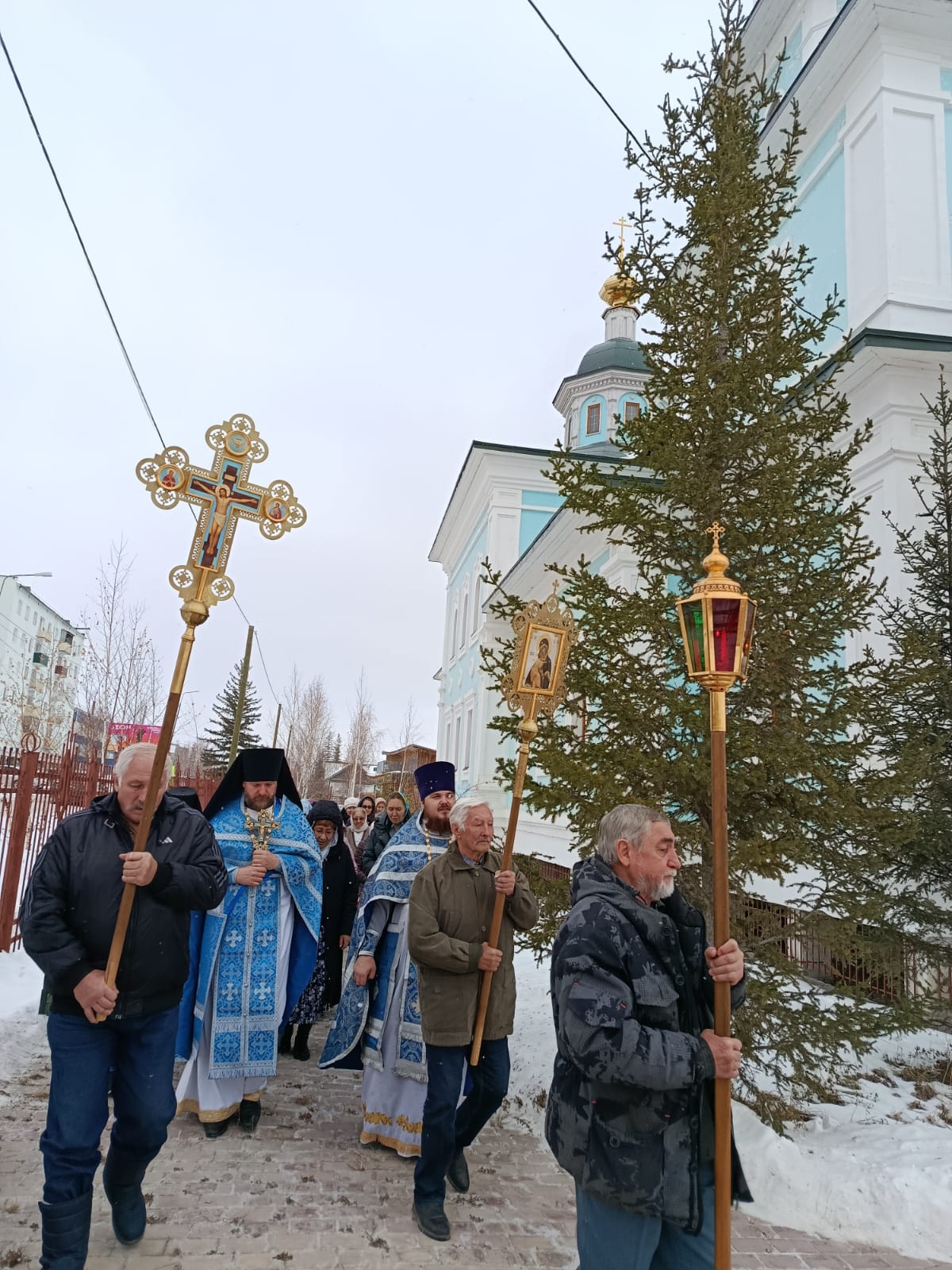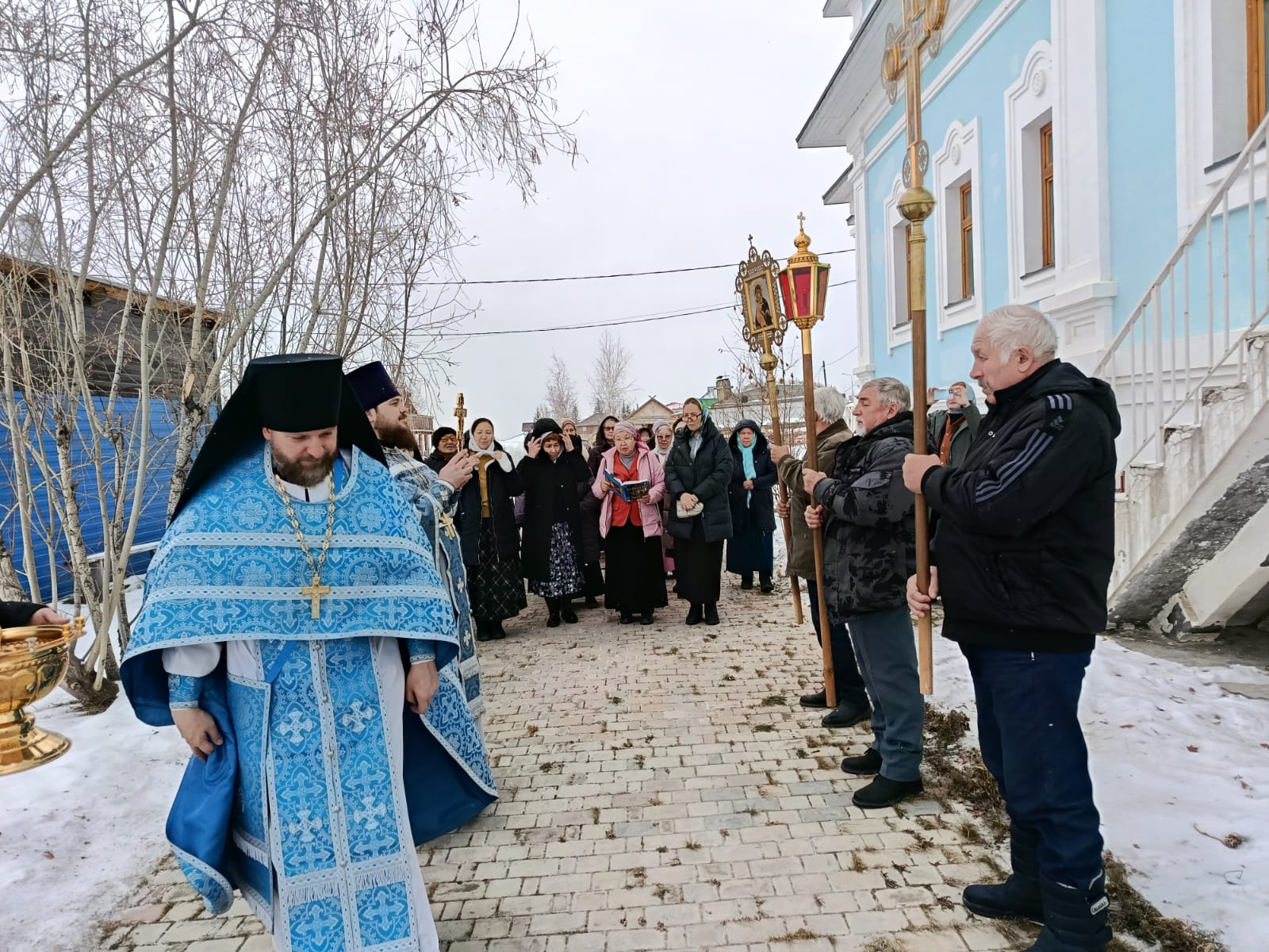 По окончании Литургии священники, игумения Феофания (Малеева) и сестры обители и прихожане прошли крестным ходом.
