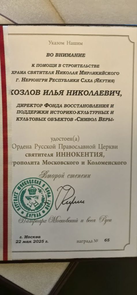 13 ноября 2025 года состоялась встреча архиепископа Якутского и Ленского Романа с директором фонда восстановления и поддержки историко-культурных и культовых объектов «Символ веры» Козловым Ильей Николаевичем.
